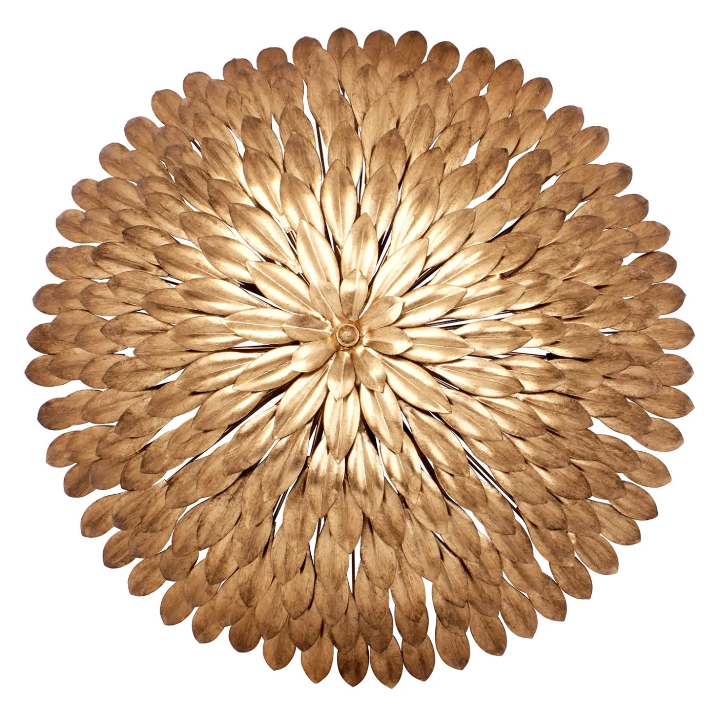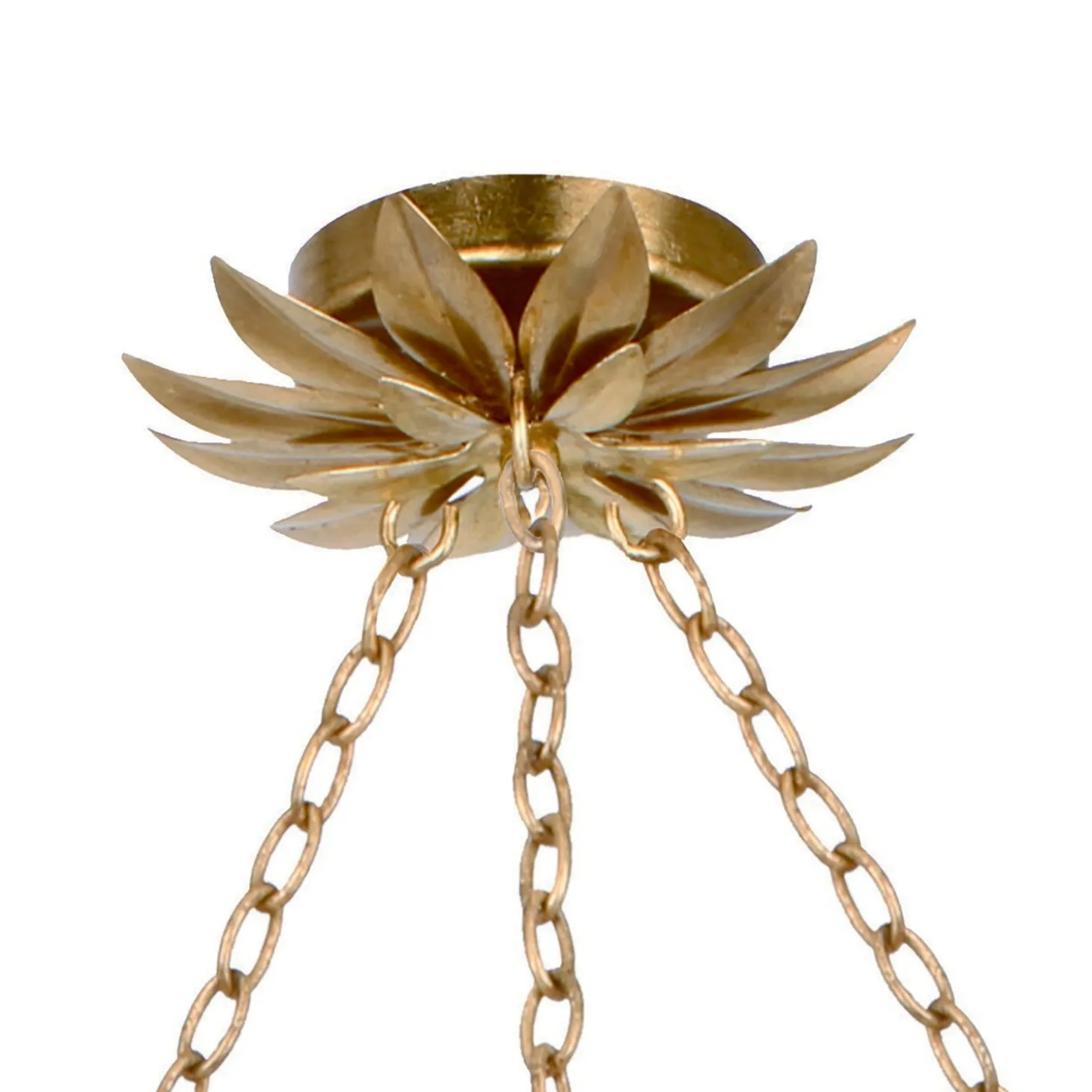The Alysa Semi-Flush showcases intricate craftsmanship with its handcrafted wrought iron leaves, forming a striking floral silhouette. Finished in warm antique gold, it adds sophistication while maintaining a light, airy presence. With a generous 30″ diameter, this fixture makes a statement in dining rooms, living spaces, or bedrooms while providing ample illumination. Its semi-flush design offers a balance of elegance and practicality, bringing decorative artistry to any ceiling.