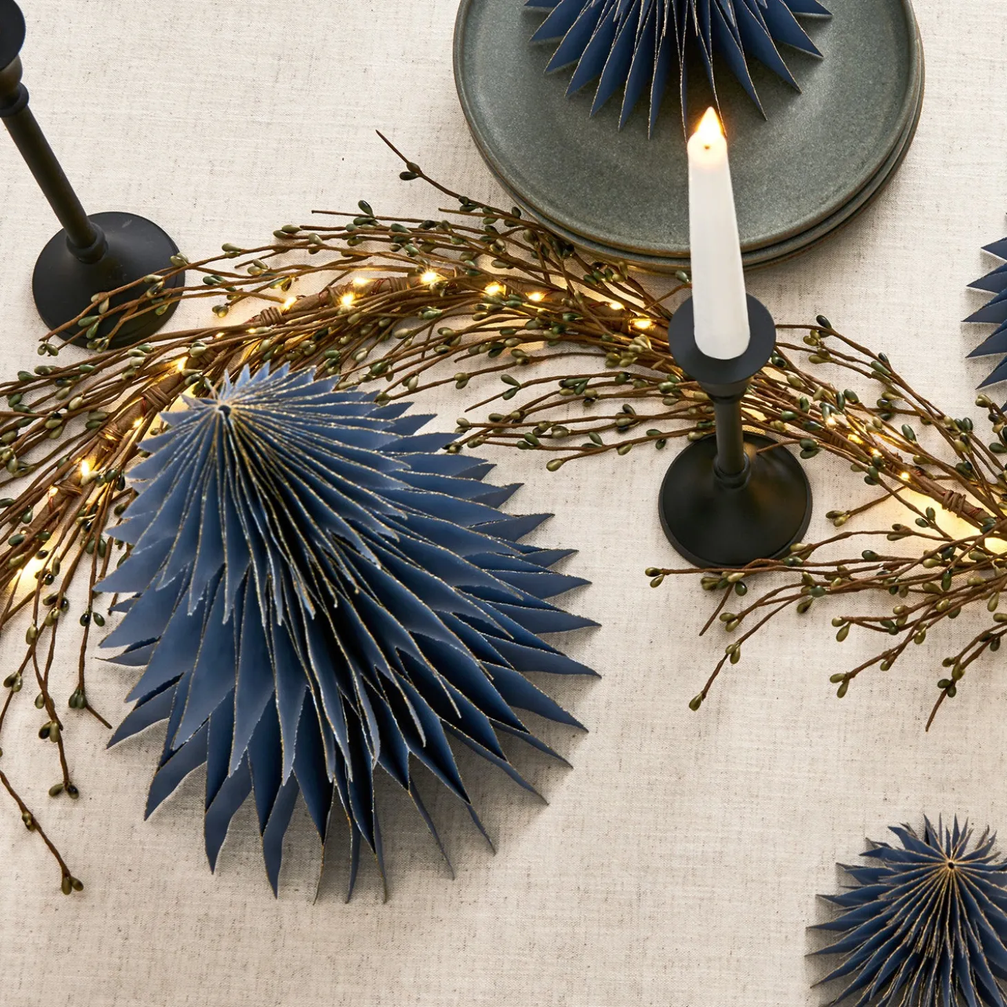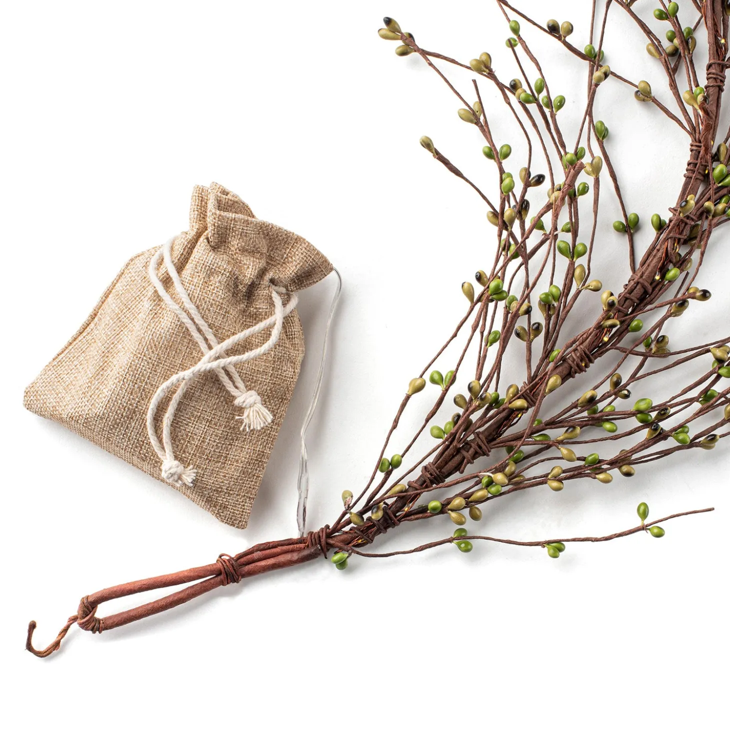 This cheerful, rustic garland features woven brown branches thick with emerald green berries. Pre-lit with the perfect amount of bright white LEDs and including an easily concealable battery box and built-in loop at the end, any installation is a breeze. Arrange along a dining table as a centerpiece or drape across a mantle for a festive touch. The garland’s rich, deep green tones can seamlessly integrate into any season’s decor- from a bright, fresh spring to an evergreen Christmas.