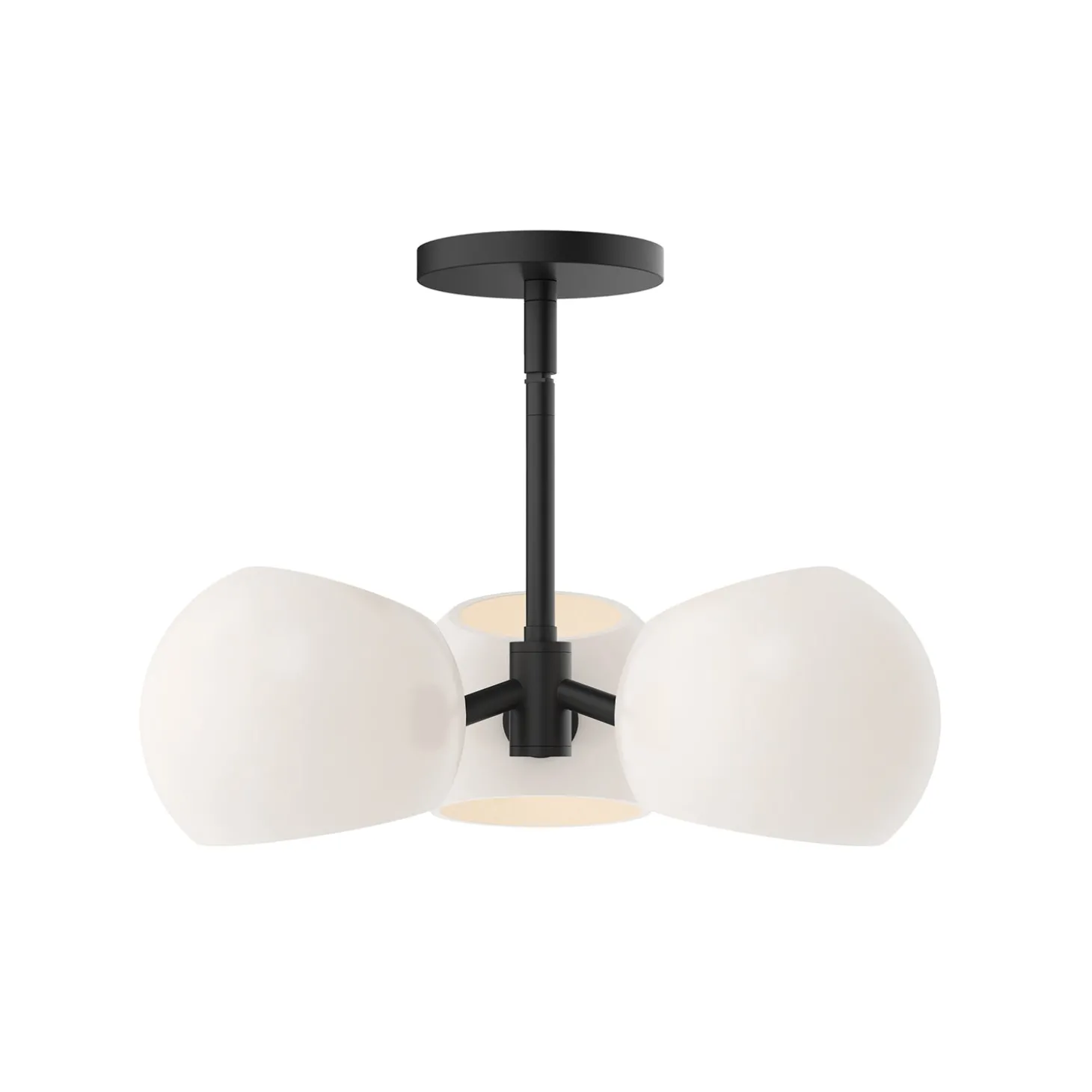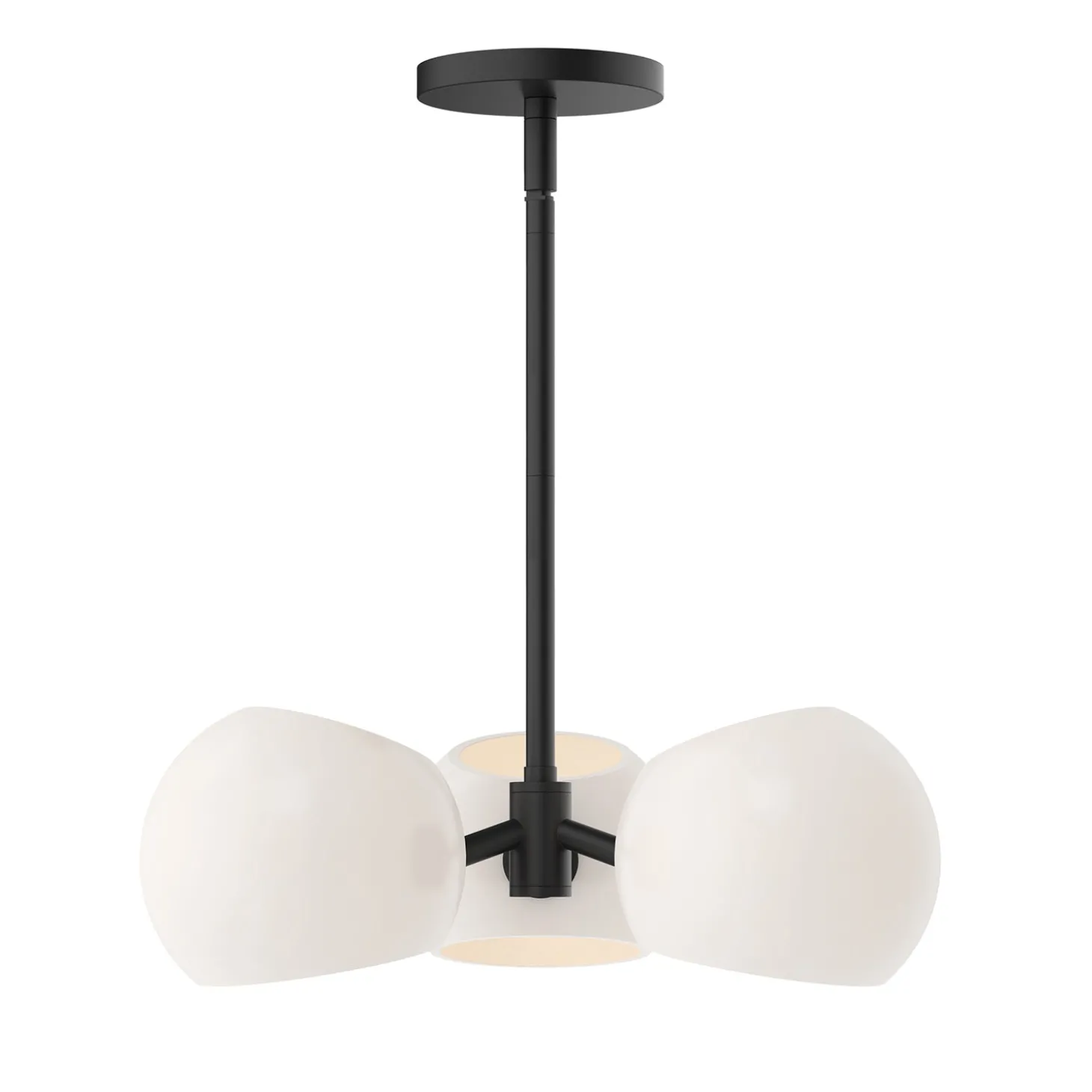 The Flynn 3 Light Pendant showcases a striking minimalist design where contemporary elegance meets functional artistry. This fixture features three opal glass orbs that appear to float around a central matte black frame, creating an airy, sculptural presence. Each milky white globe houses a concealed bulb, providing a soft, diffused illumination that creates a warm, inviting glow. The sophisticated contrast between the dark frame and luminous opal glass creates a captivating visual statement. Measuring a compact 16 inches in diameter, the Flynn pendant makes a bold statement without overwhelming the space. Its versatile aesthetic works beautifully in entryways, above kitchen islands, or as a dining room centerpiece, adding a touch of refined modern charm to any interior.