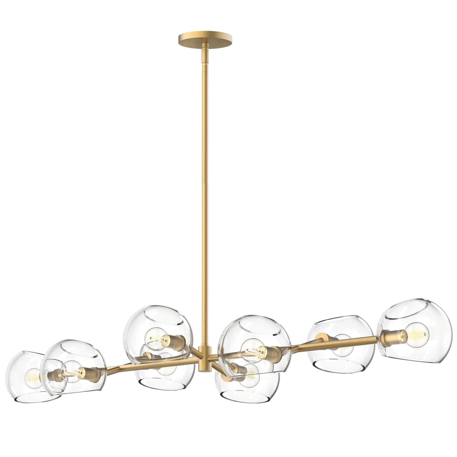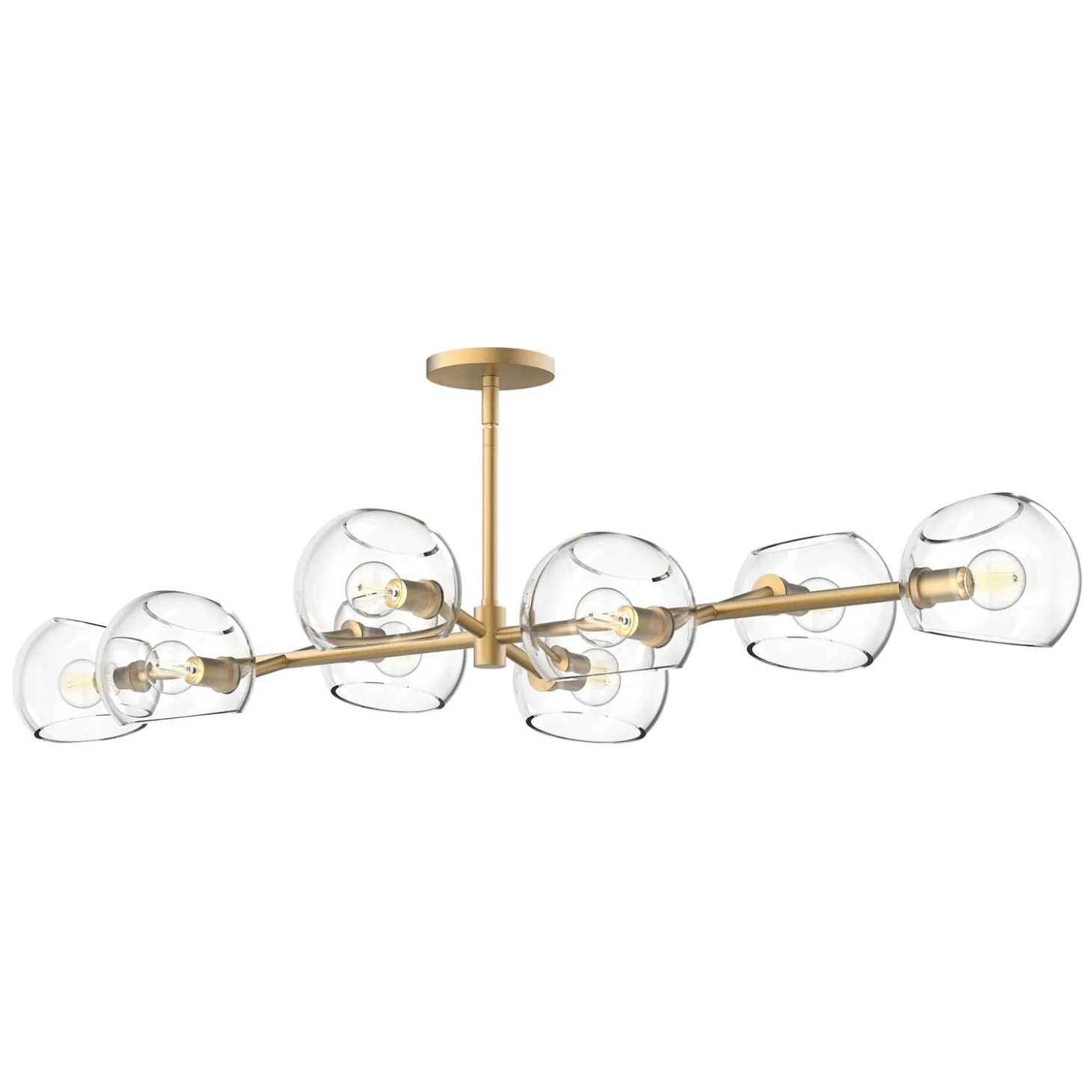 • Features eight clear glass globes arranged along a horizontal brushed brass bar in a sophisticated linear design