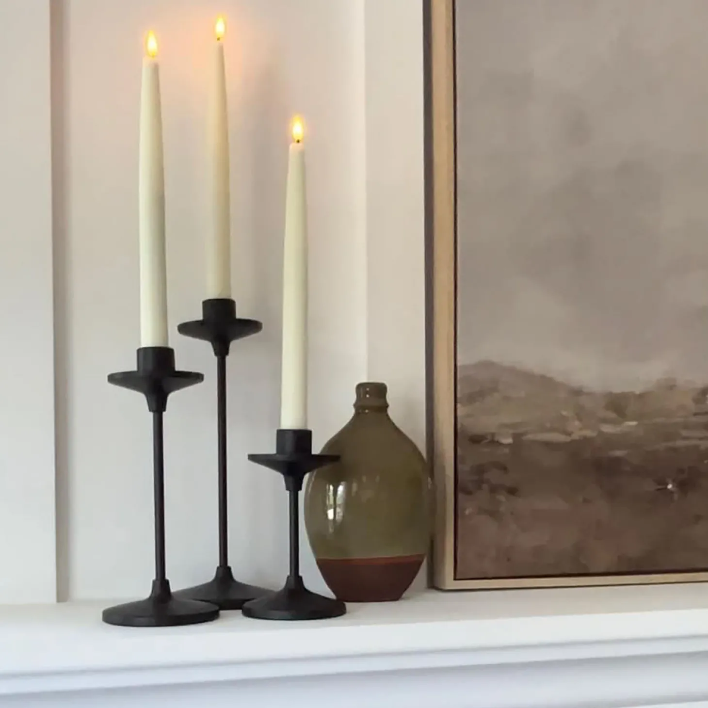 This candle set includes four elegant ivory taper candles featuring our distinctive Infinity Wick flames. They are a beautiful, versatile addition to any style of decor, boasting a real-wax exterior finished with a unique, distressed texture and neutral ivory hue. These tapers will fit most standard taper candle holders, and the included remote with timer make these Infinity Wick Candles an ideal gift for Christmas, housewarming, or for the newlyweds in your family. Place among botanicals to accentuate a floral centerpiece to elevate any dinner table, group together on a side table or mantel, or distribute around a room to bring a touch of cheer to shadowy corners. Perfect for home, weddings, churches, restaurants, and events.