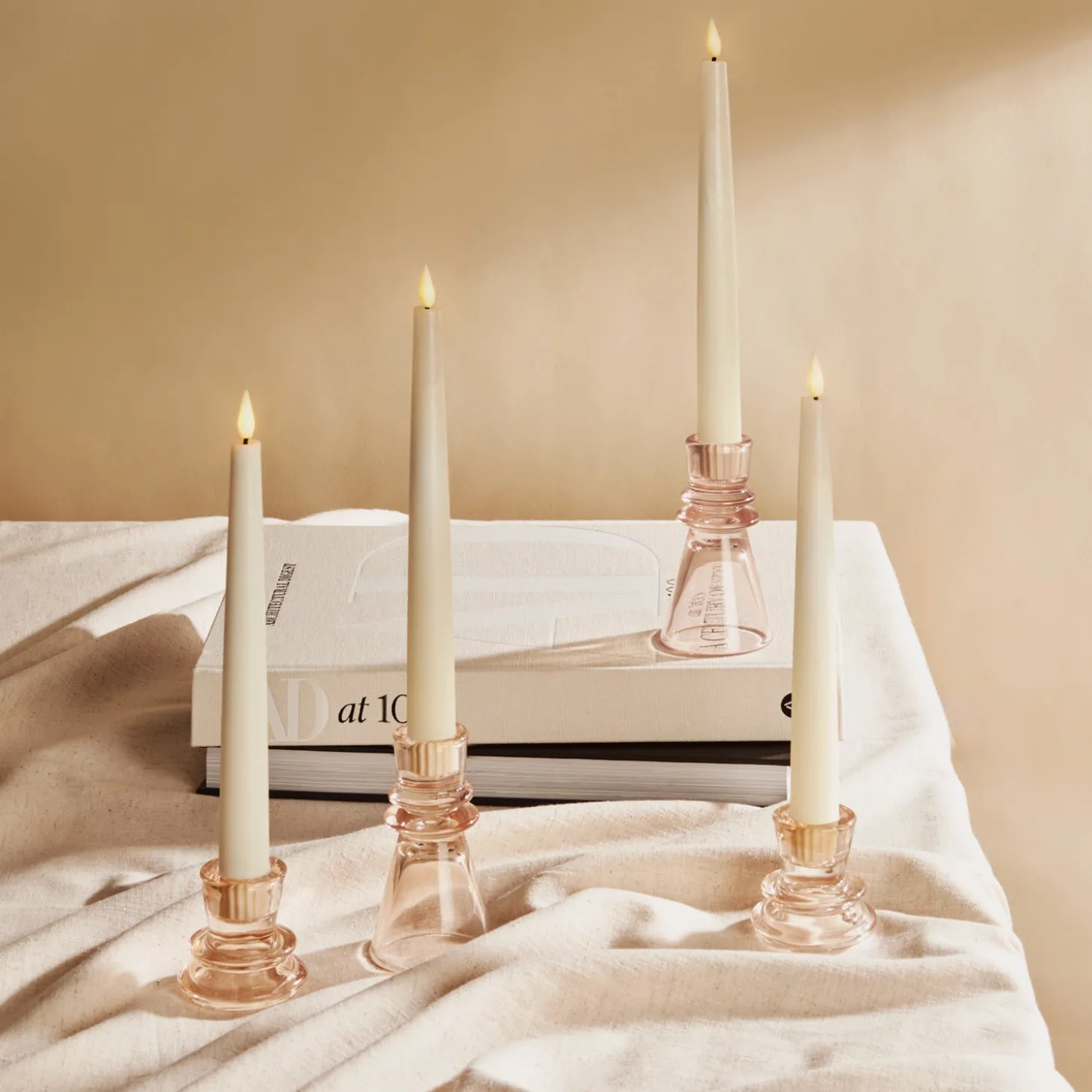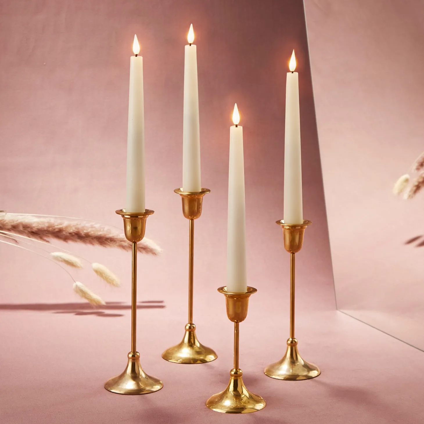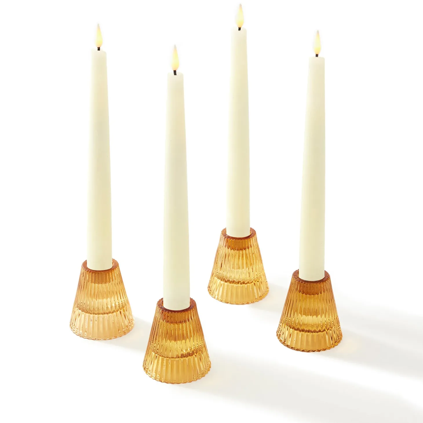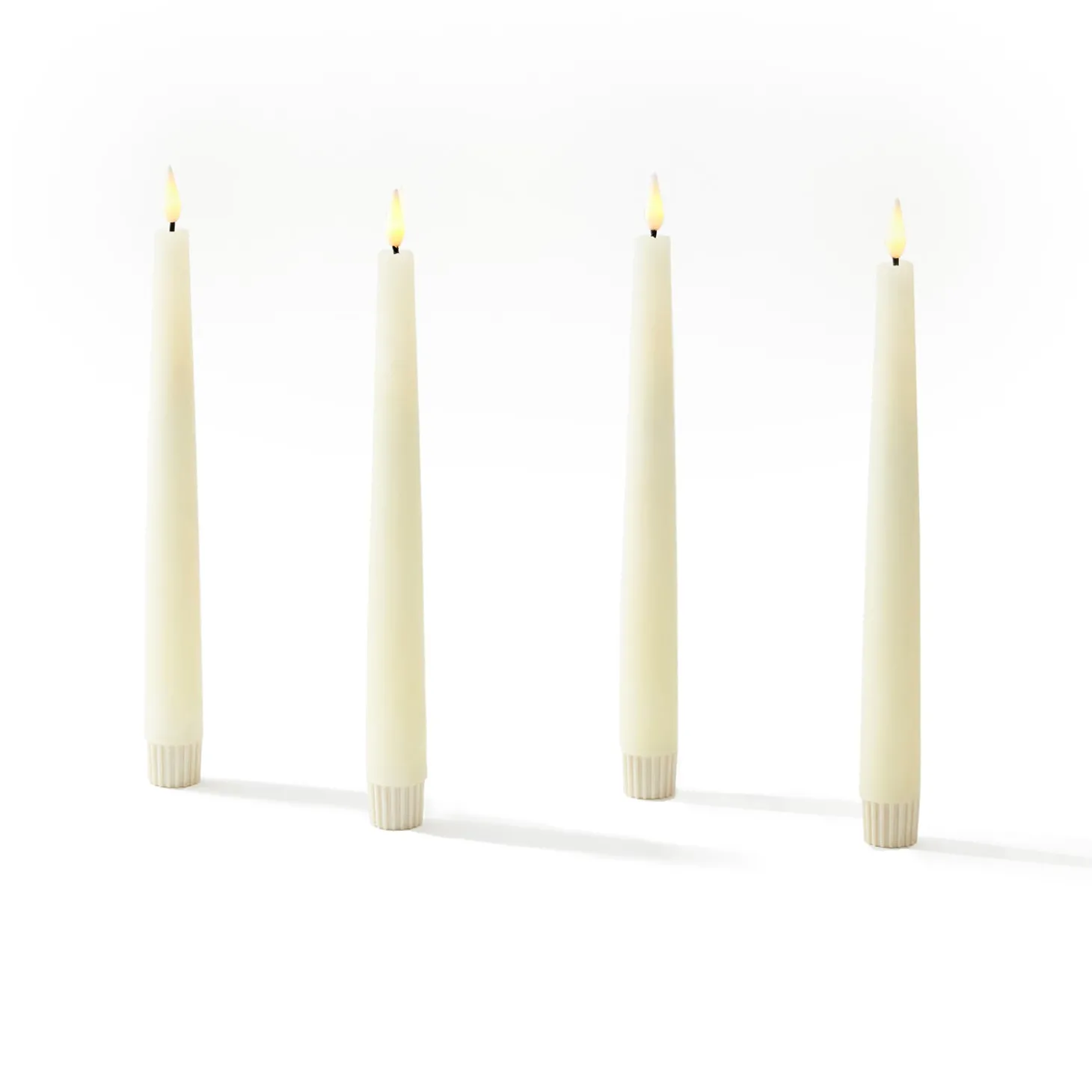 • Four flameless taper candles measuring .75″ in diameter and 9″ in height, featuring our distinctive and ultra-realistic Infinity Wick flame