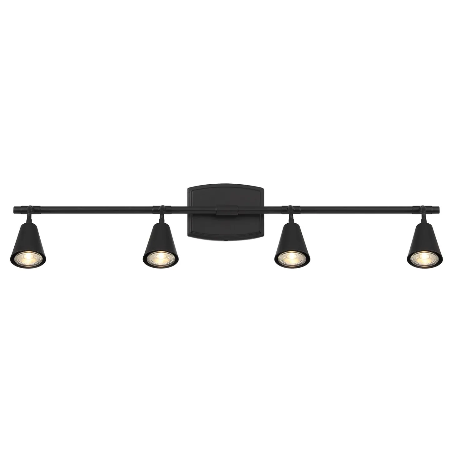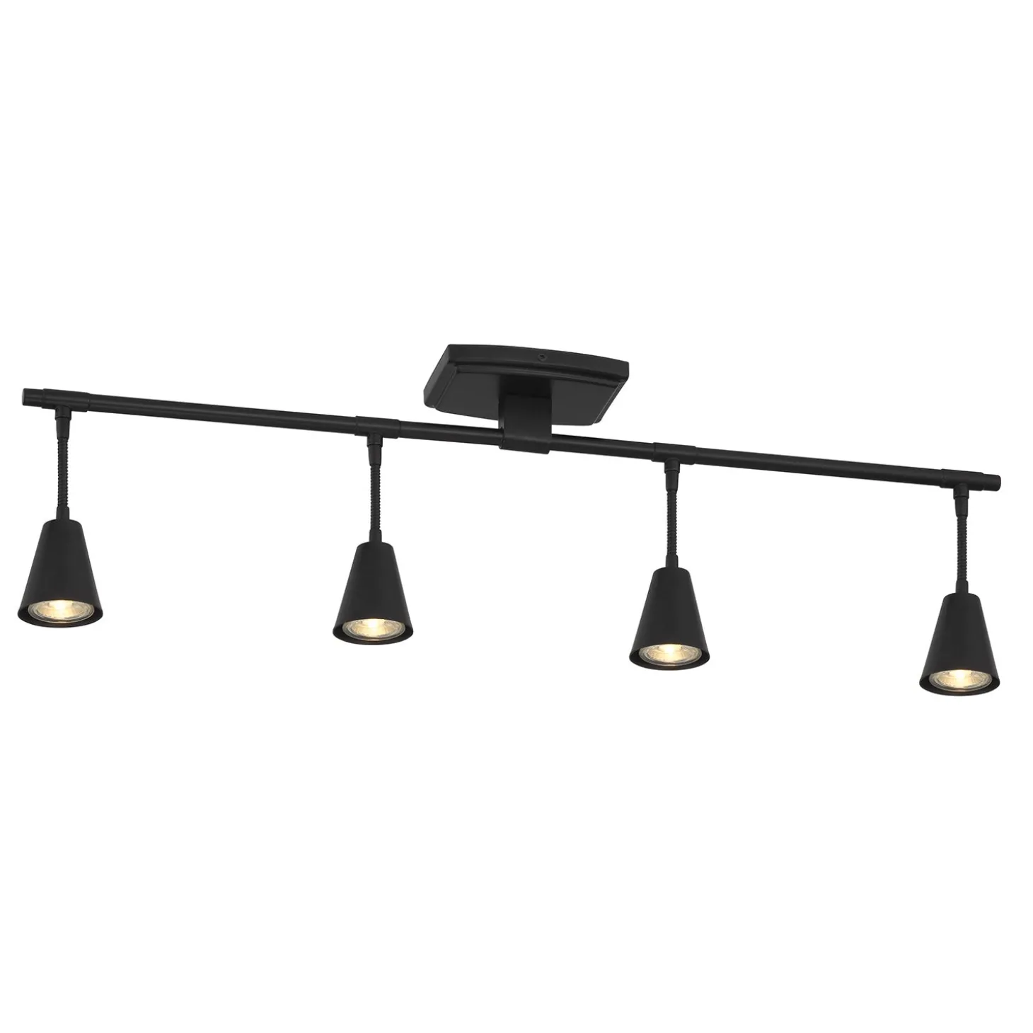 The Hudson 4-Light LED Fixed Track Light is a modern industrial take on a classic, functional ceiling light fixture. The four flexible sockets are fixed across the track light bar and attached to a matching canopy. The powerful GU10 LED light bulbs (included) provide a cheerful, bright white light at 420 lumens per bulb. A sleek matte black finish, flexible swiveling heads, and dimming capability make this fixture ideal for indoor spotlights and versatile enough to place nearly anywhere. This incredibly adaptable fixture can be mounted as a flush-mount ceiling light or vanity wall light. Install in hallways, bathrooms, or in your living room or bedroom. Adjust the direction of the heads to spotlight wall art or direct additional visibility to whatever corner needs a little illumination.