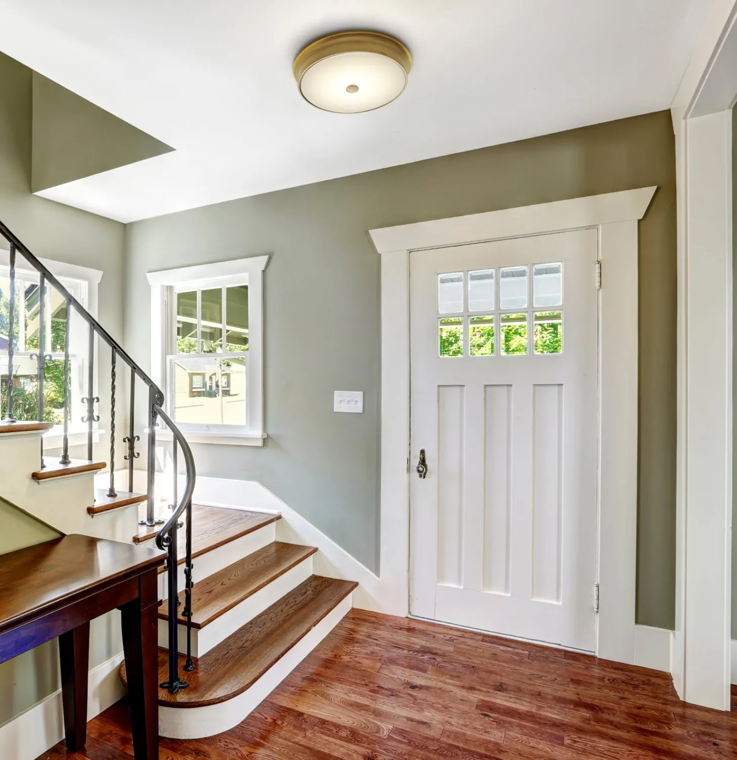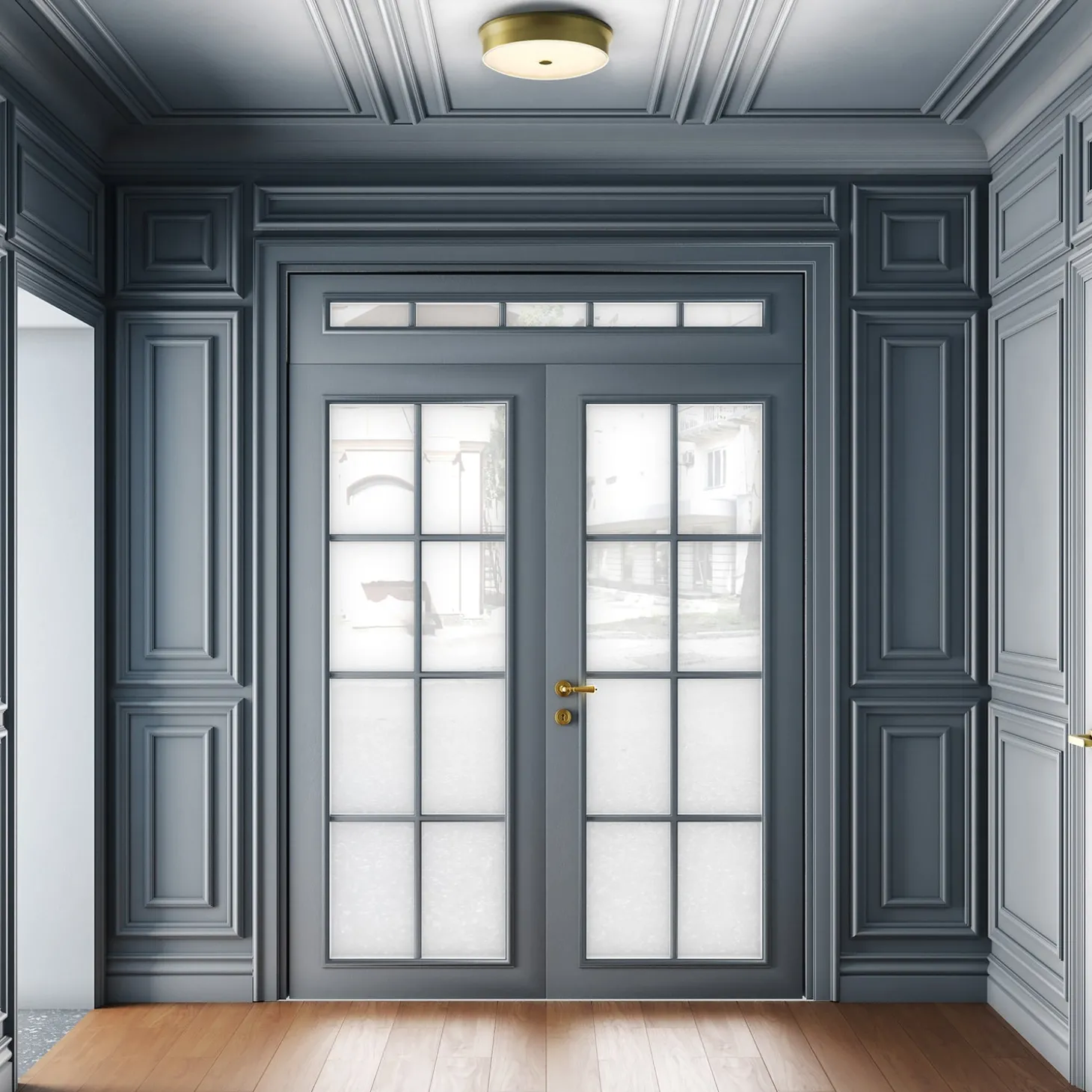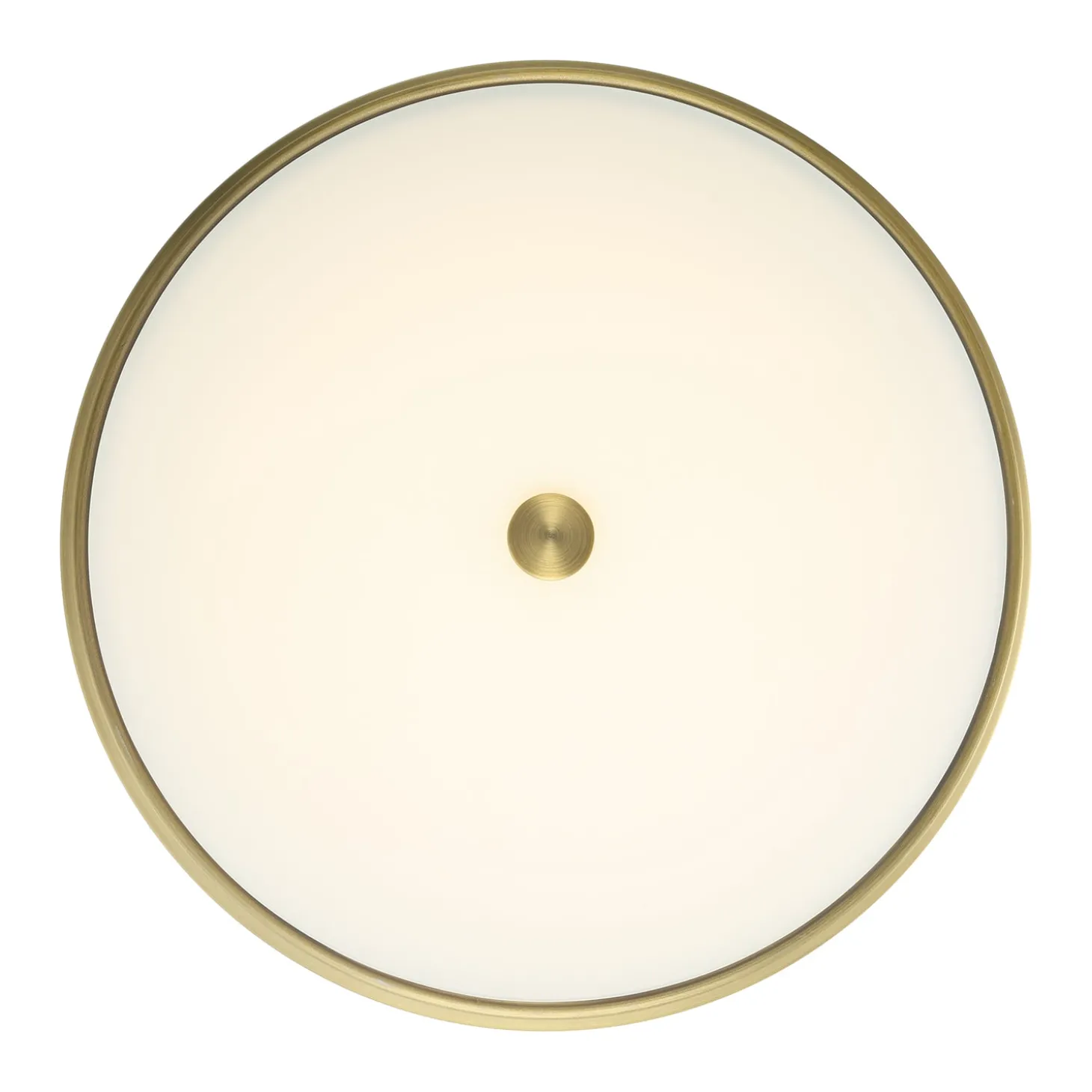 • Features a classic, slim-profiled flush mount light fixture with a warm glow and timeless aged brass finish