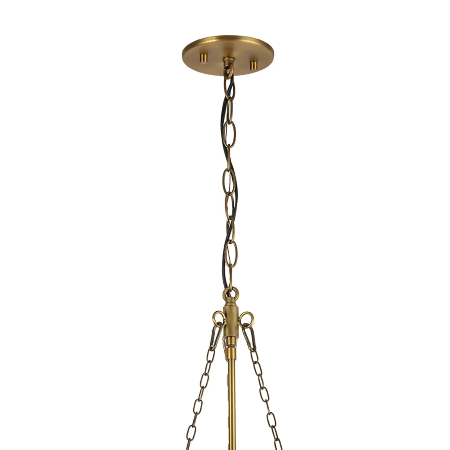 The Adrian Pendant features a timeless design with a white linen empire shade suspended by decorative chains from an Antique Brass frame. This elegant pendant light showcases classic 1920s-inspired details with its traditional shade shape and warm metallic accents. Measuring 18″ in diameter, the Adrian creates soft, ambient illumination that’s ideal for dining rooms, entryways, or living spaces. The combination of the crisp white shade and brass hardware brings a touch of refined vintage elegance to any interior, perfectly balancing traditional charm with contemporary sensibility.
