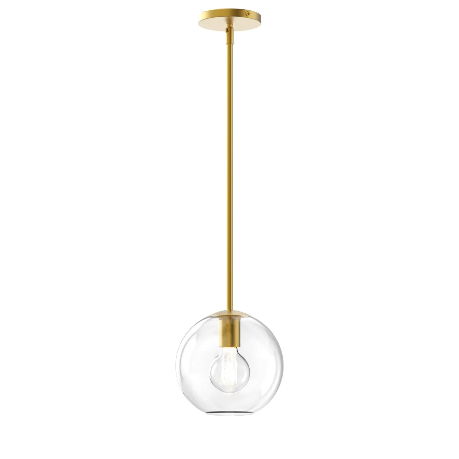 Aria 8″ Clear Globe Pendant, Satin Brass