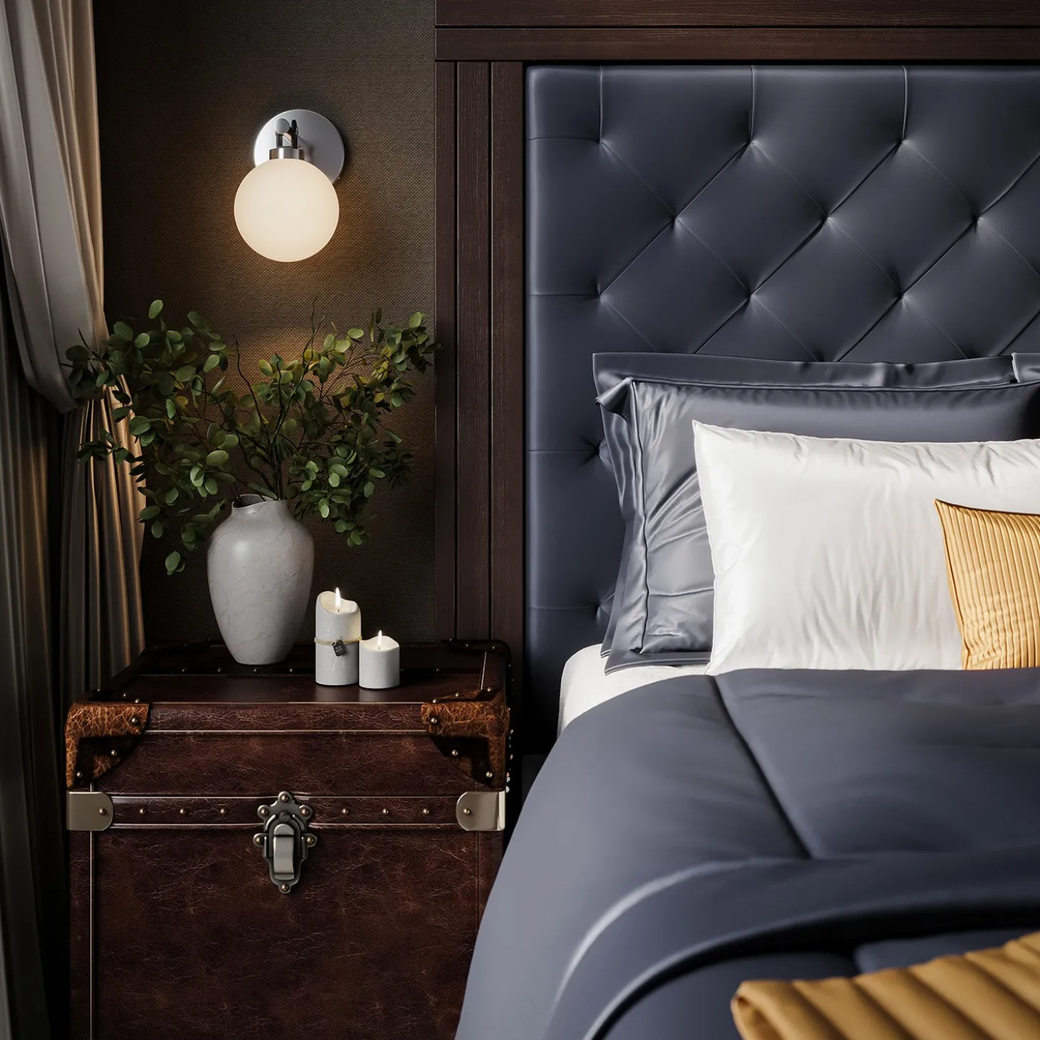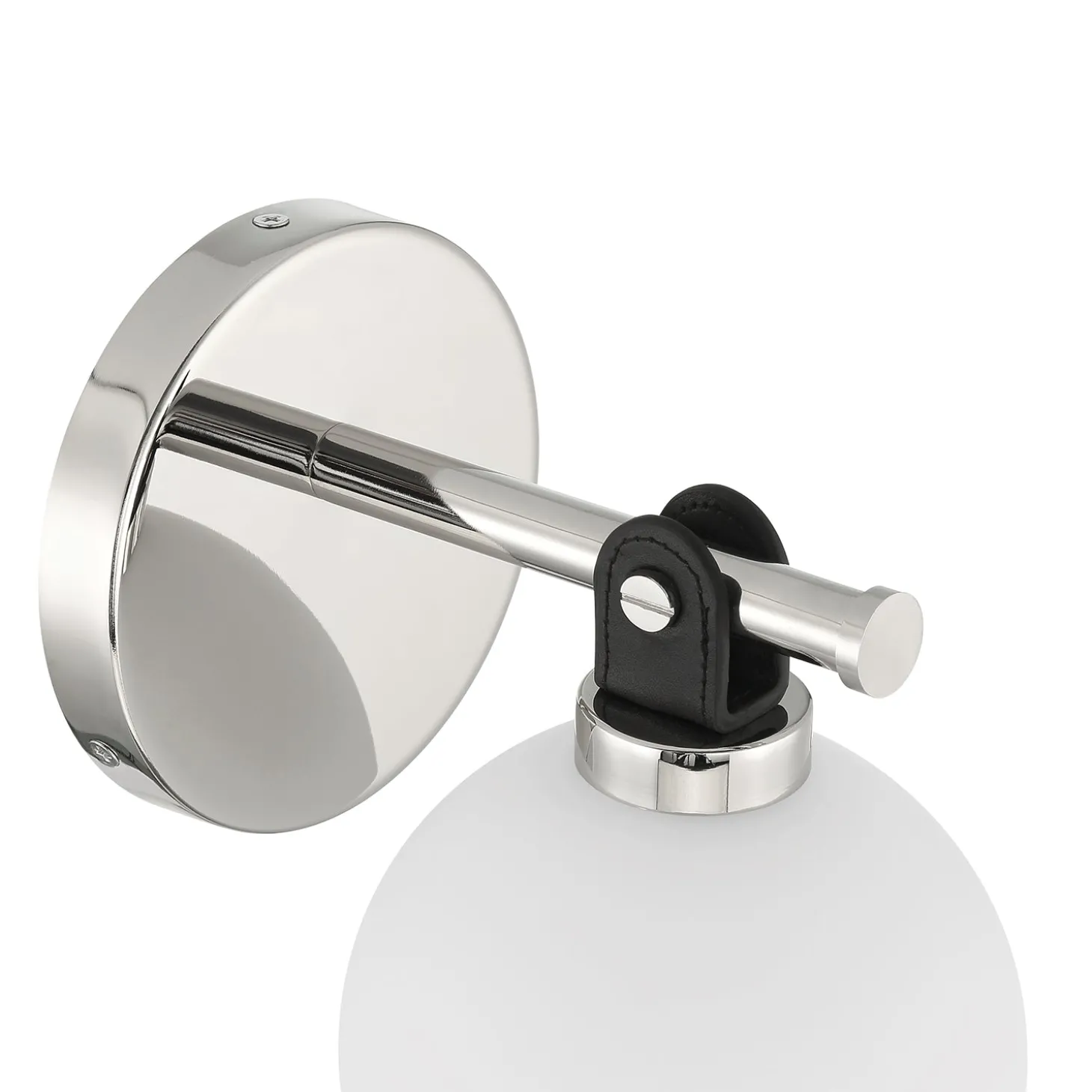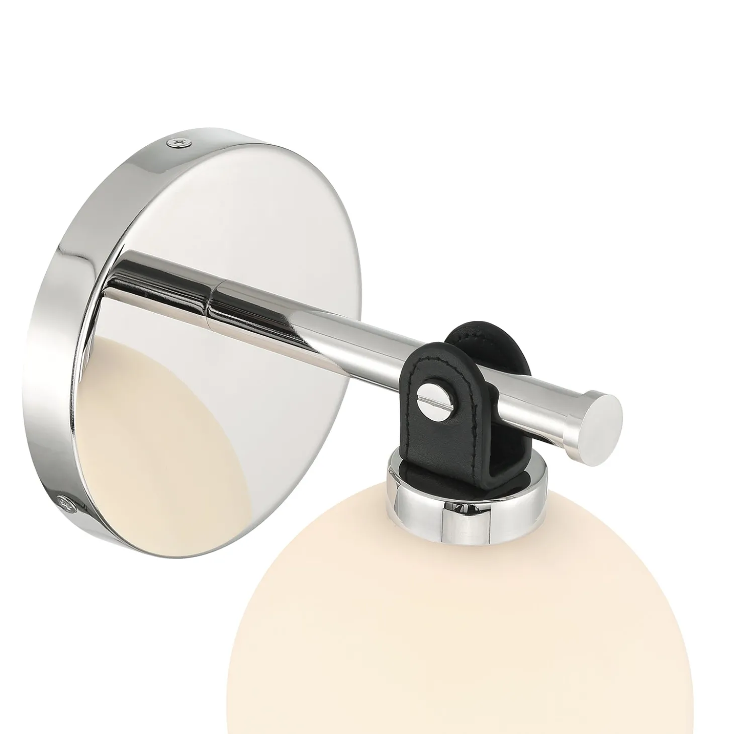 With a spherical shape and mixed material design, the Bryce Vanity LED Wall Sconce is a modern wall light that puts a sophisticated stamp on your living space. Authentic black leather detailing on the shade holder suspends a single opal glass globe and gives this elegant wall sconce a rich and warm quality. The polished nickel finish of the metal frame enhances the wall light and looks great when used in pairs around a vanity in a bathroom. This modern sconce can also be used as beautiful and practical bedside lighting, or as an interesting accent light. The Bryce Vanity Wall Sconce is a fully dimmable LED light, creating the ideal mood for your room. It utilizes a bright G9 LED bulb, included in the box, for long-lasting quality lighting. This beautiful modern fixture is also available in a matching 3-light vanity light.