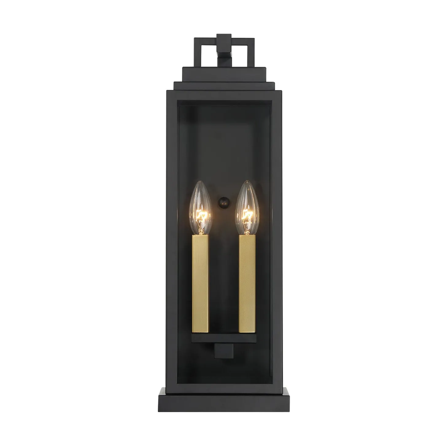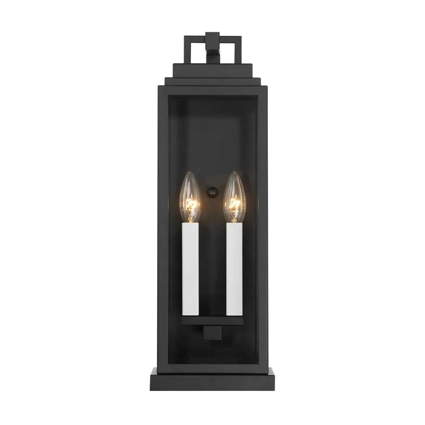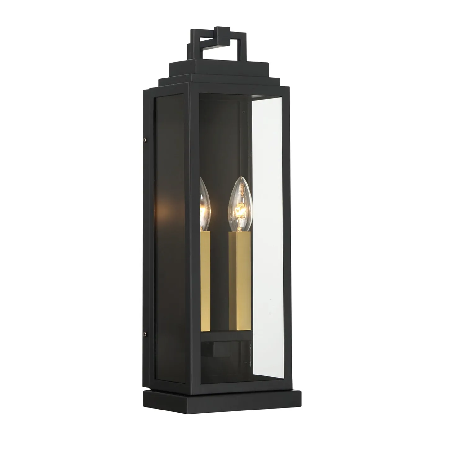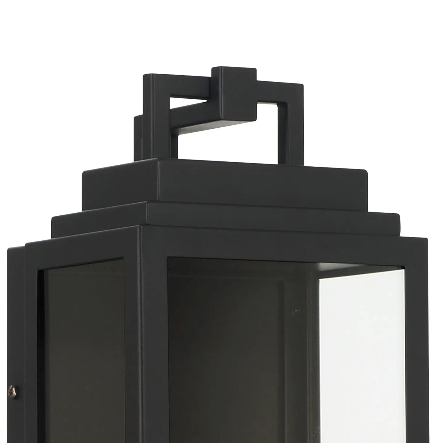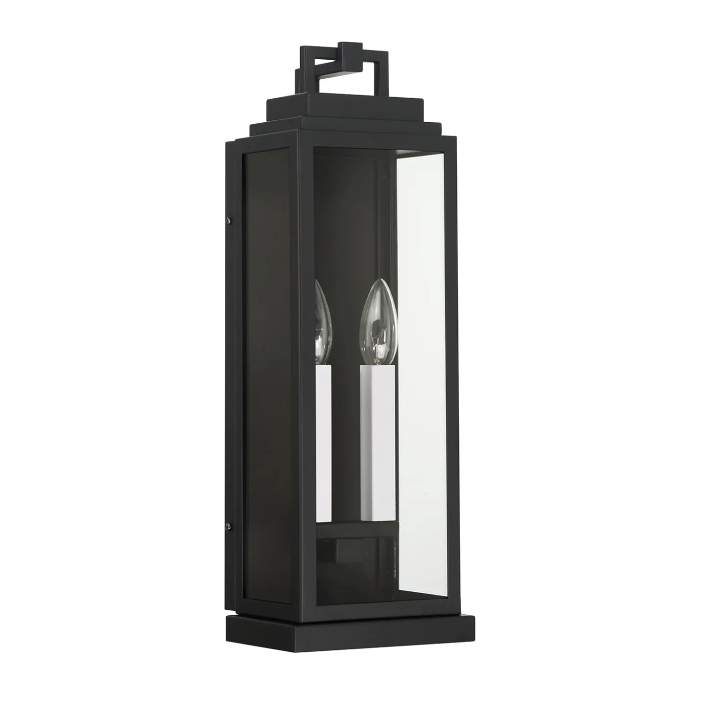 The Easton Outdoor Wall Light features a sleek architectural design with a Matte Black finish. Clear glass panels surround two light bulbs, creating a clean, modern aesthetic for your home’s exterior. This slim fixture measures 19″ tall, making it perfect for framing entryways, garages, or illuminating larger exterior wall spaces. The stepped crown detail adds subtle visual interest to the contemporary silhouette. Weather-resistant and wet-rated for outdoor use, the Easton combines elegant style with durable construction to enhance your exterior lighting design.