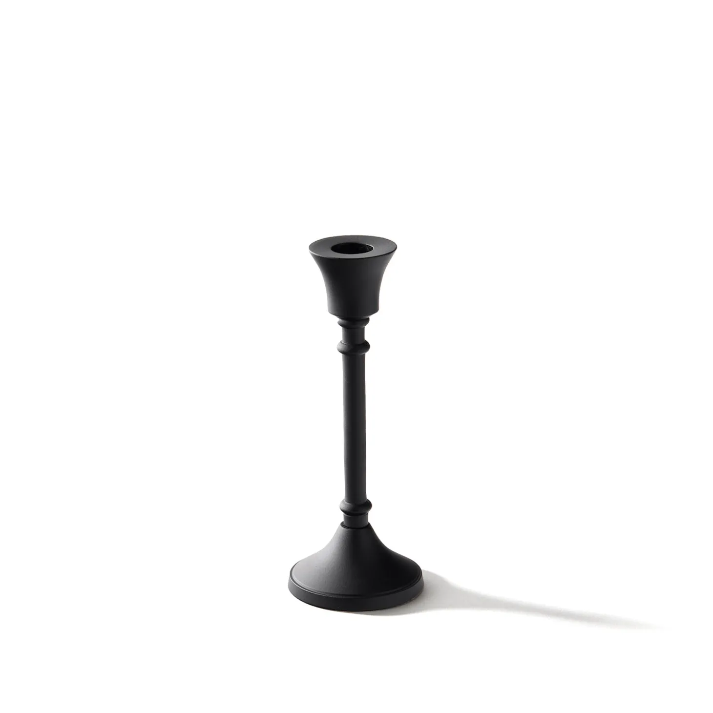 Versatile and modern, the Finley Taper Holder features a classic silhouette with a smooth matte black finish. These slender, tulip style holders create a rich layer for seasonal decor and look lovely displayed all year long. Finley Taper Holders come in three heights and pair perfectly with our Infinity Wick taper candles or any standard taper. Use alone to highlight the simplicity of the candle, or arrange multiples together for a dynamic display. Whether your taste is classic Americana or modern farmhouse, these timeless candle holders will add style to your space; Perfect for home, weddings, churches, restaurants, and special events.