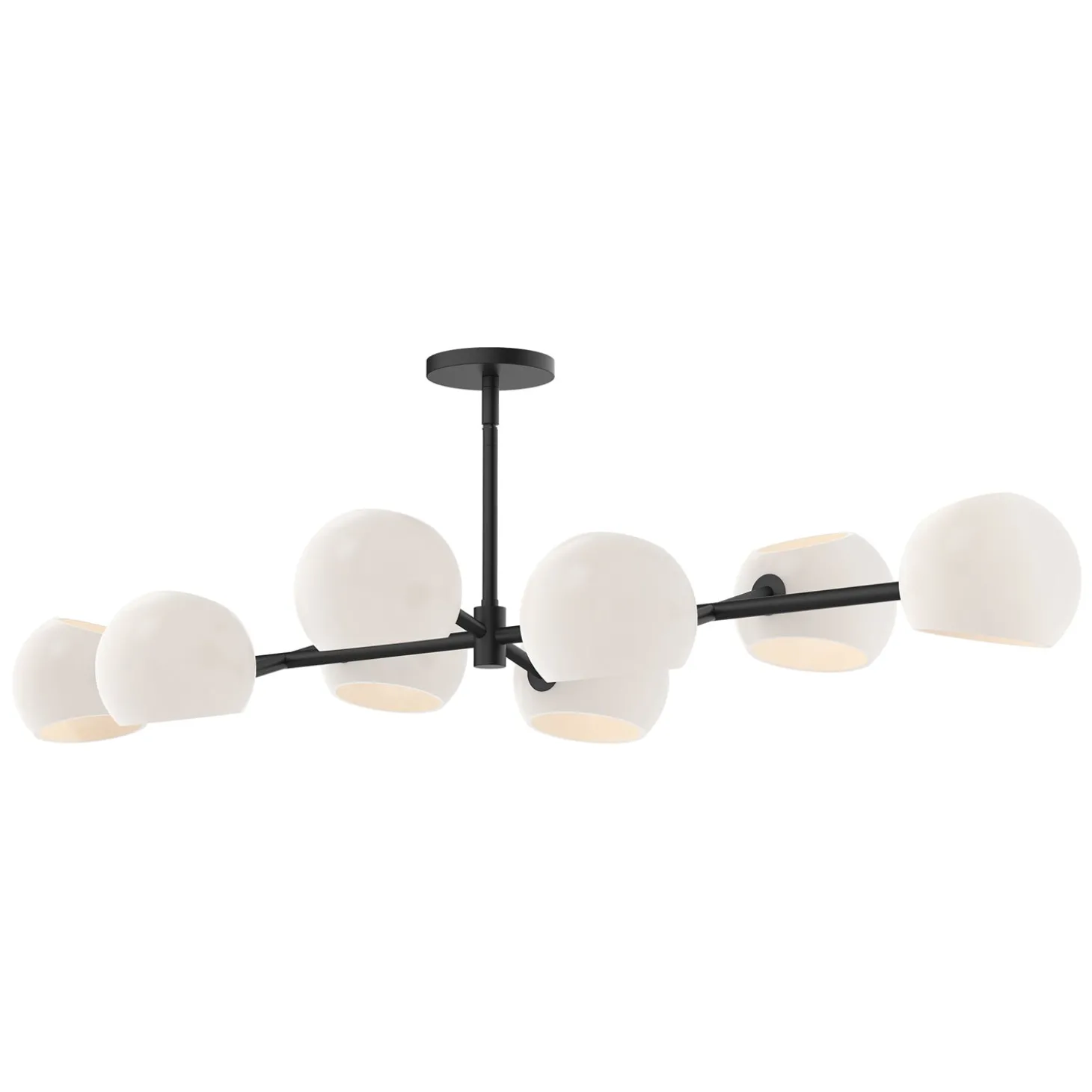 • Features eight opal glass globes arranged along a horizontal matte black bar in a sophisticated linear design