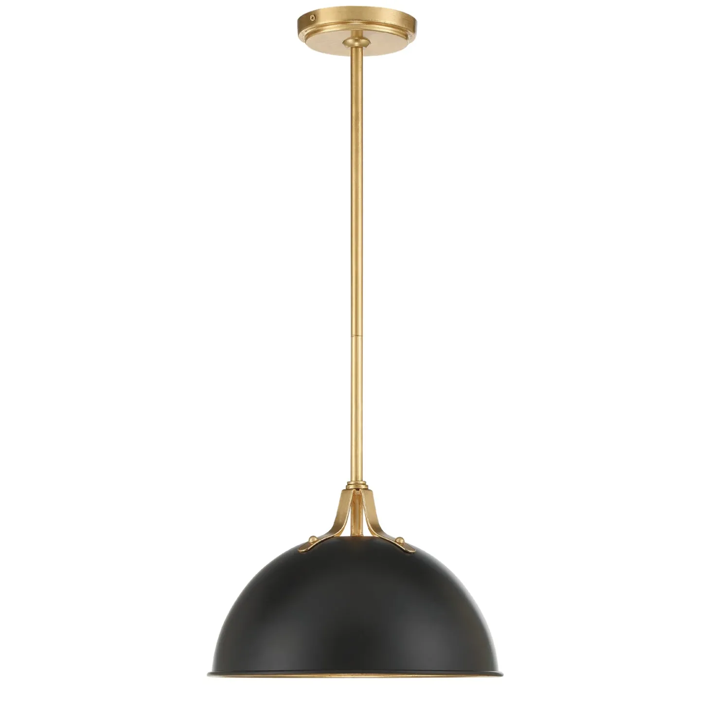 The Grant Pendant features a sleek dome design with a Matte Black exterior and Antique Gold interior finish. This stylish contrast creates a warm glow when illuminated while maintaining a clean, modern silhouette. The small pendant measures 12″ in diameter and includes multiple rods for a customizable hanging height, making it ideal for kitchen islands, dining areas, or entryways. The industrial-meets-modern aesthetic works well in various interior styles from farmhouse to contemporary. The pendant’s focused downward light provides excellent task lighting while the metallic interior adds a touch of sophistication and warmth to your space.