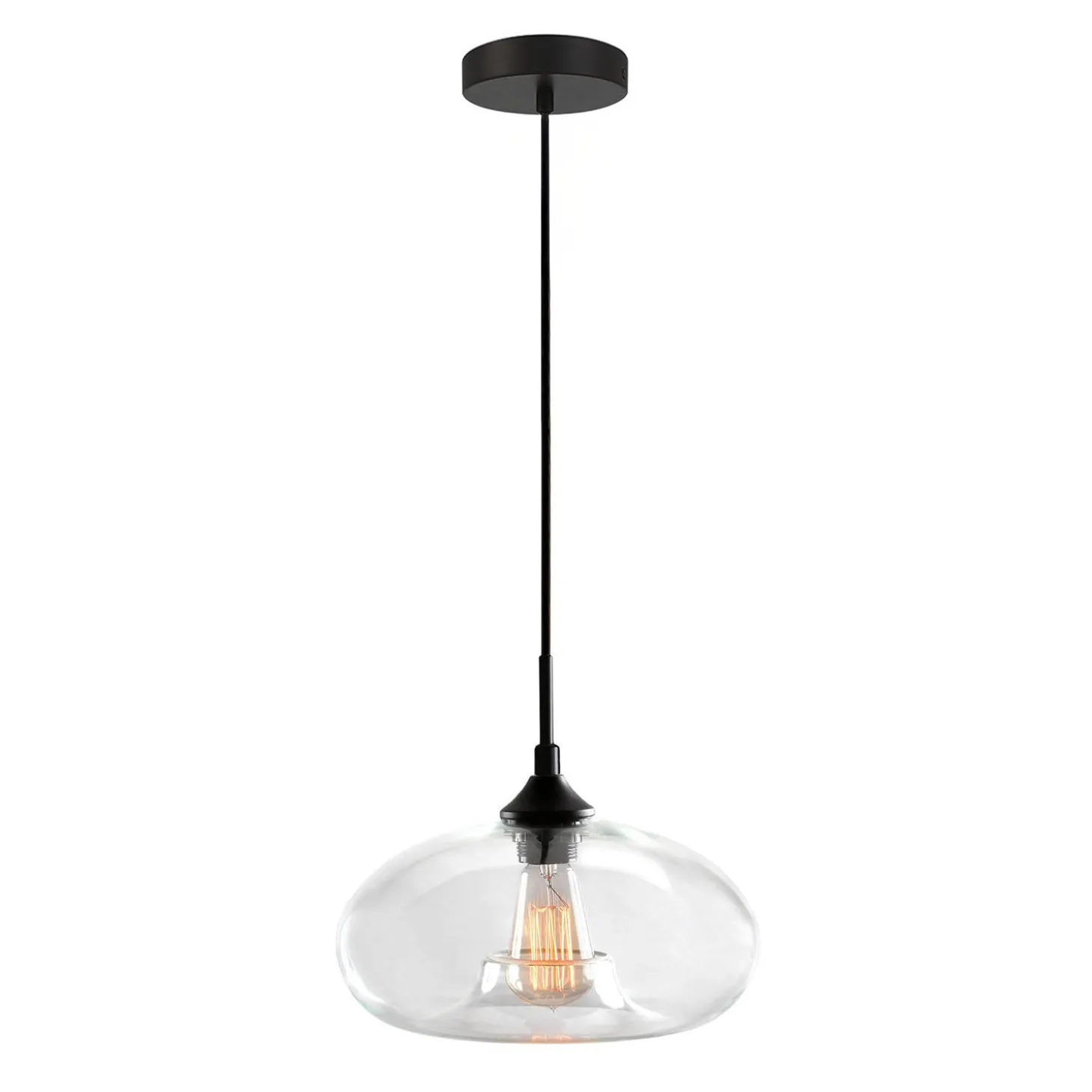 • Features our thoughtfully pared down, industrial silhouette with a blown, clear glass shade, perfect for displaying an Edison-style bulb of your choice