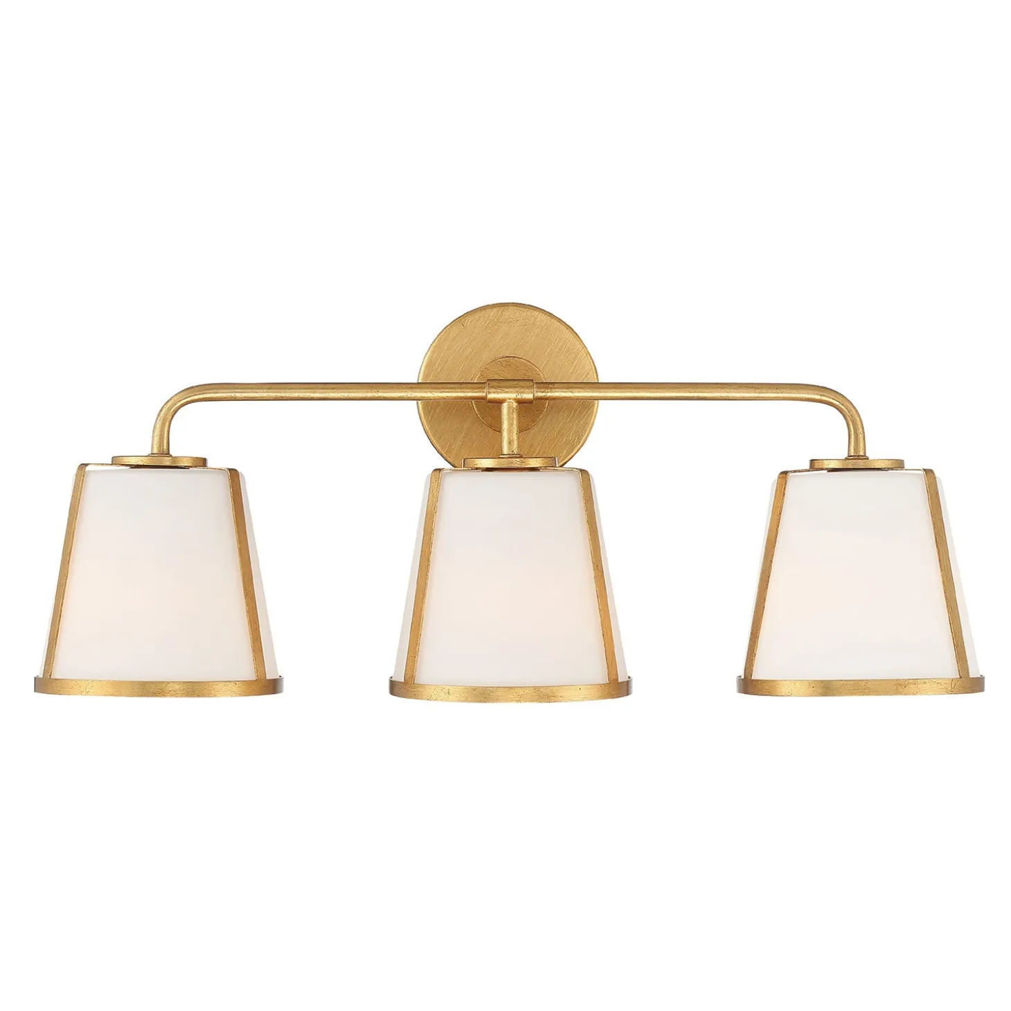 • Tailored vanity light featuring three tapered opal glass shades wrapped in elegant metal rings