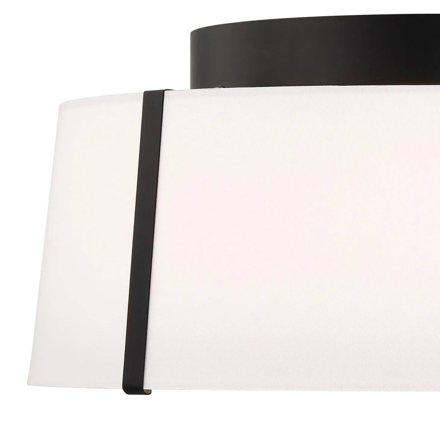 • Elegant flush mount featuring a double white silk shade with a glass diffuser trimmed in a metal ring