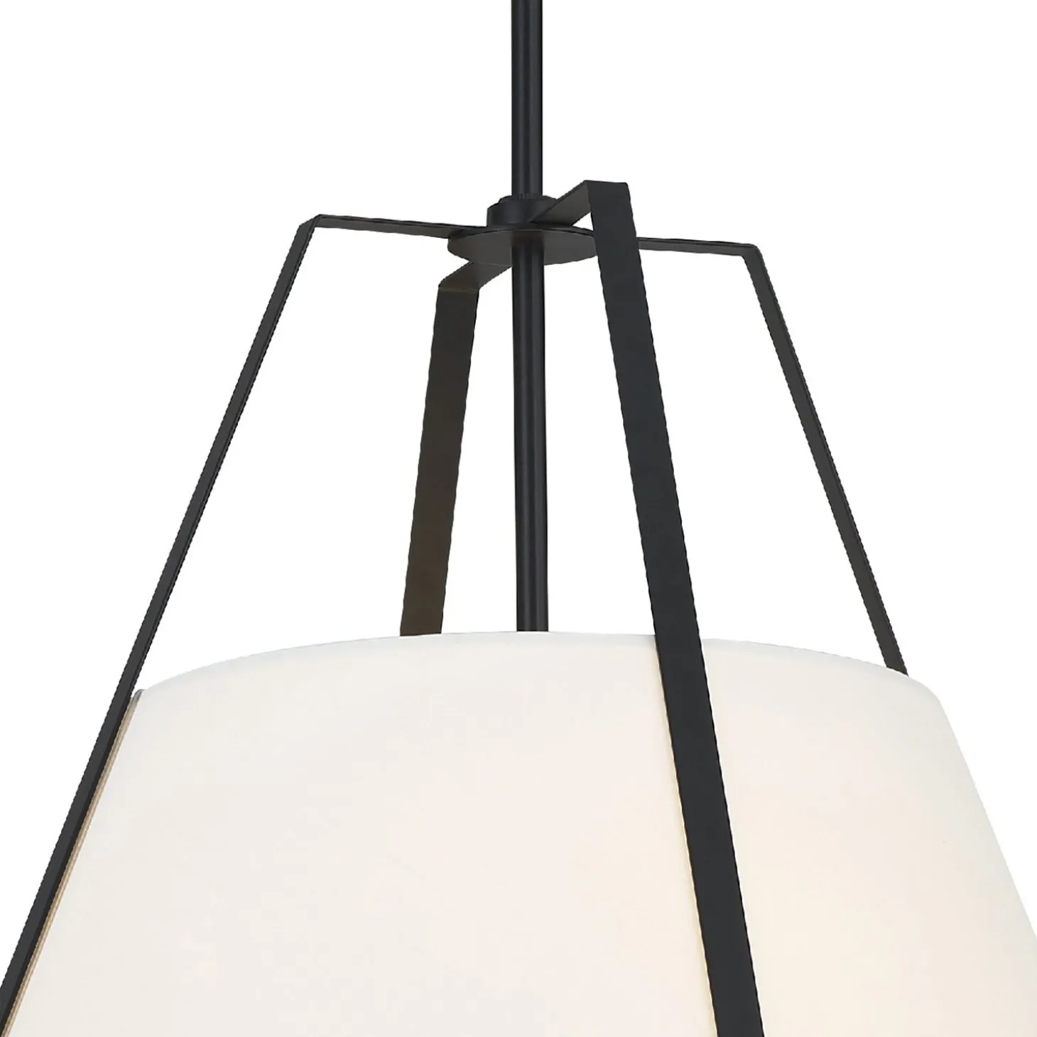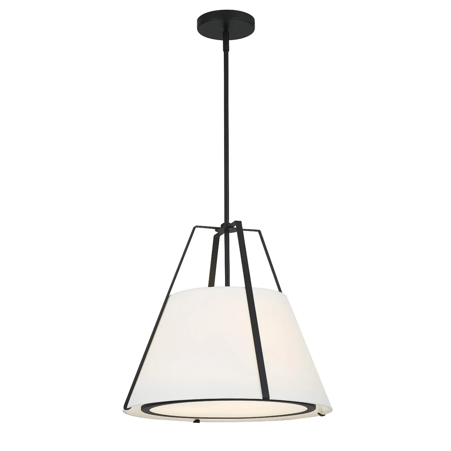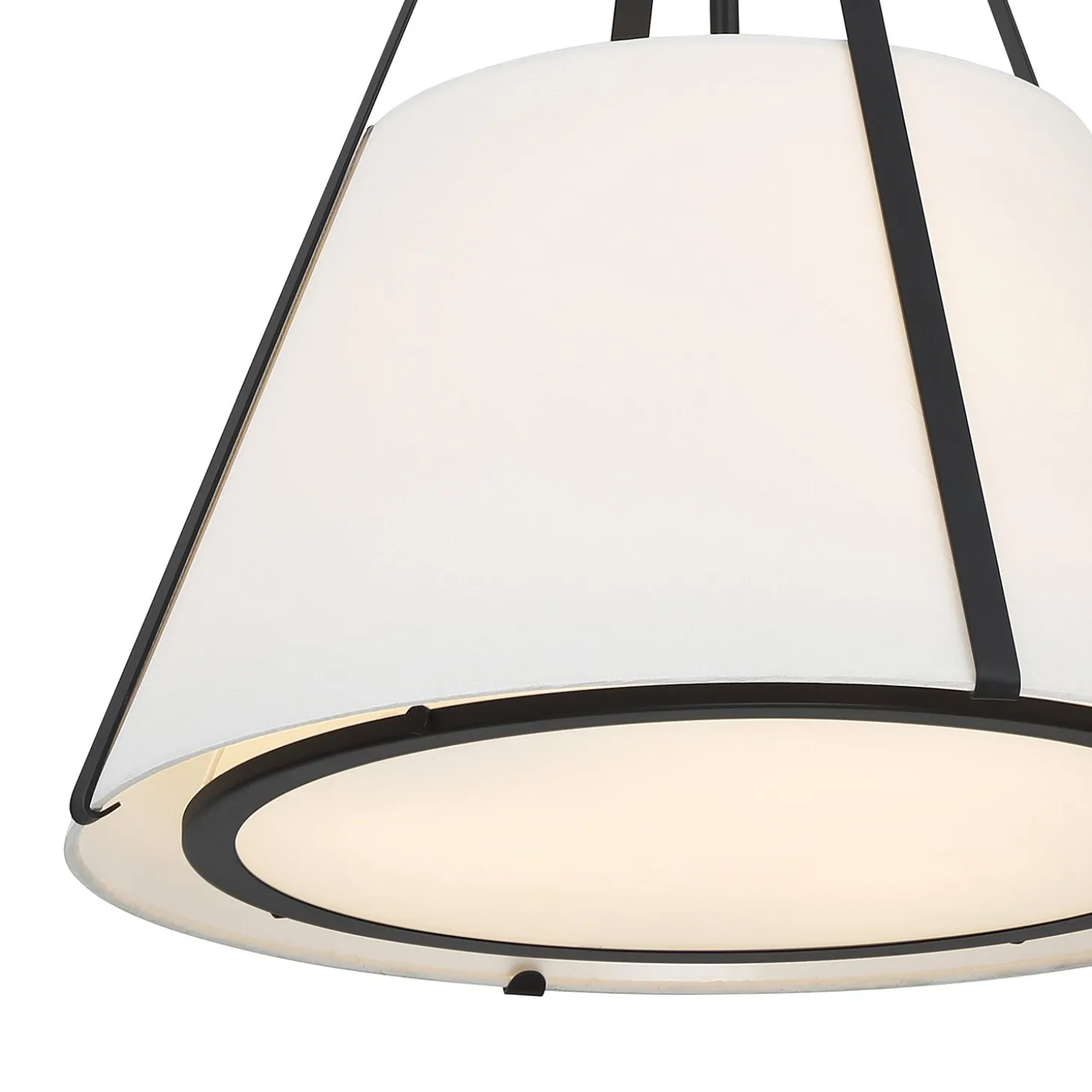 The Hoyt Pendant redefines traditional pendant lighting with its sophisticated balance of structured minimalism and refined details. This distinctive fixture showcases an innovative double white silk shade construction, with the interior shade elegantly trimmed by a sculptural black ring that secures a glass diffuser. This thoughtful engineering creates a clean, architectural aesthetic with effortless elegance. With its impressive 20″ diameter and substantial 18.5″ height, this generously scaled pendant produces rich, ambient illumination perfect for enhancing dining settings, kitchen islands, or entryway spaces. The sophisticated black finish introduces luxurious depth that complements diverse interior aesthetics from classic to contemporary transitional. With its versatile design and perfectly balanced proportions, the Hoyt pendant transforms your space with understated sophistication.