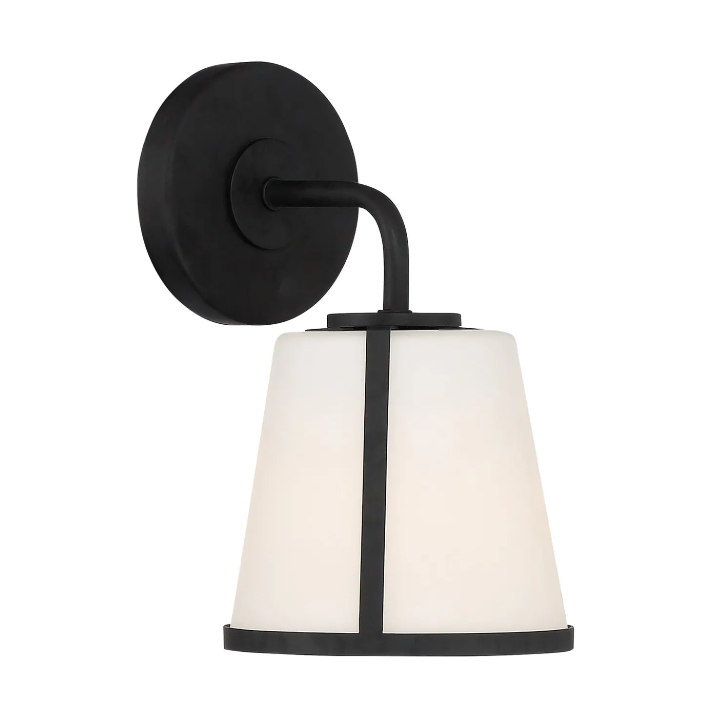 Hoyt Vanity Wall Sconce, Black with Opal Glass