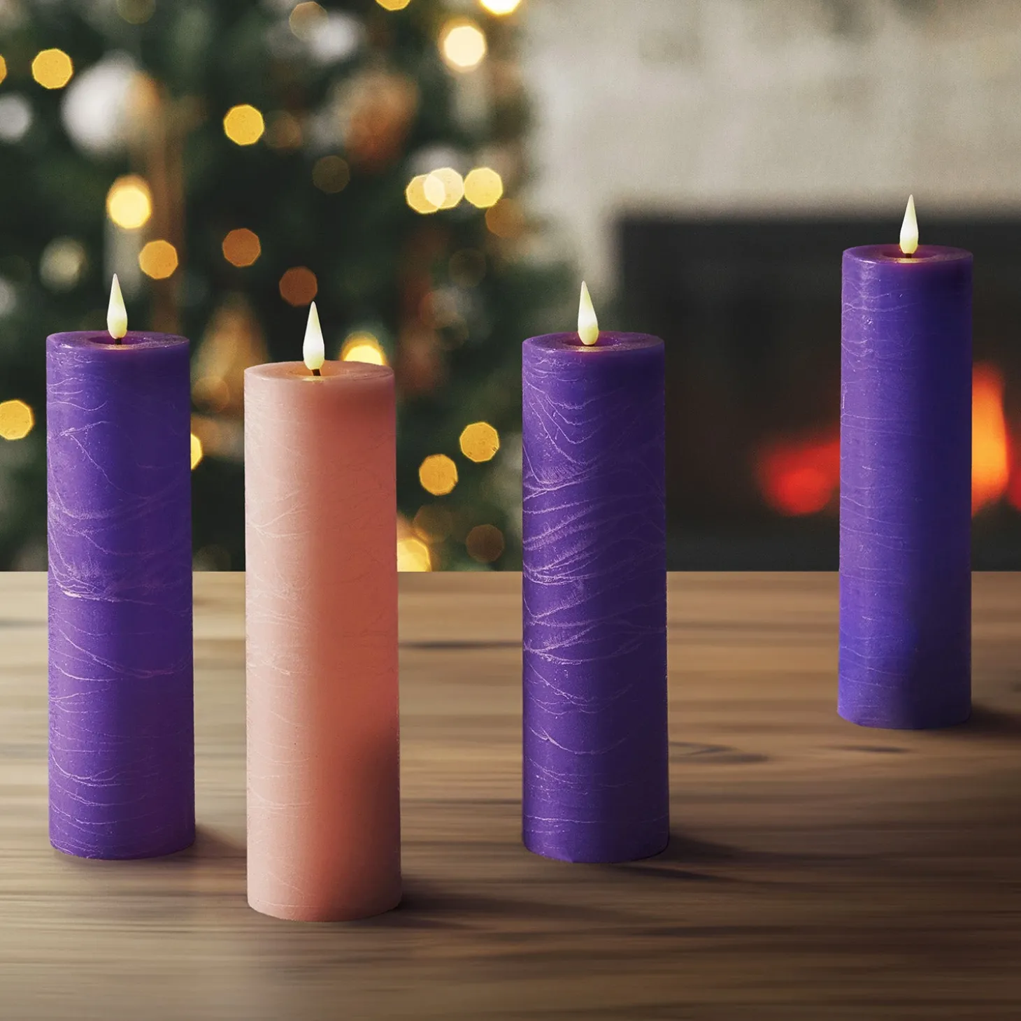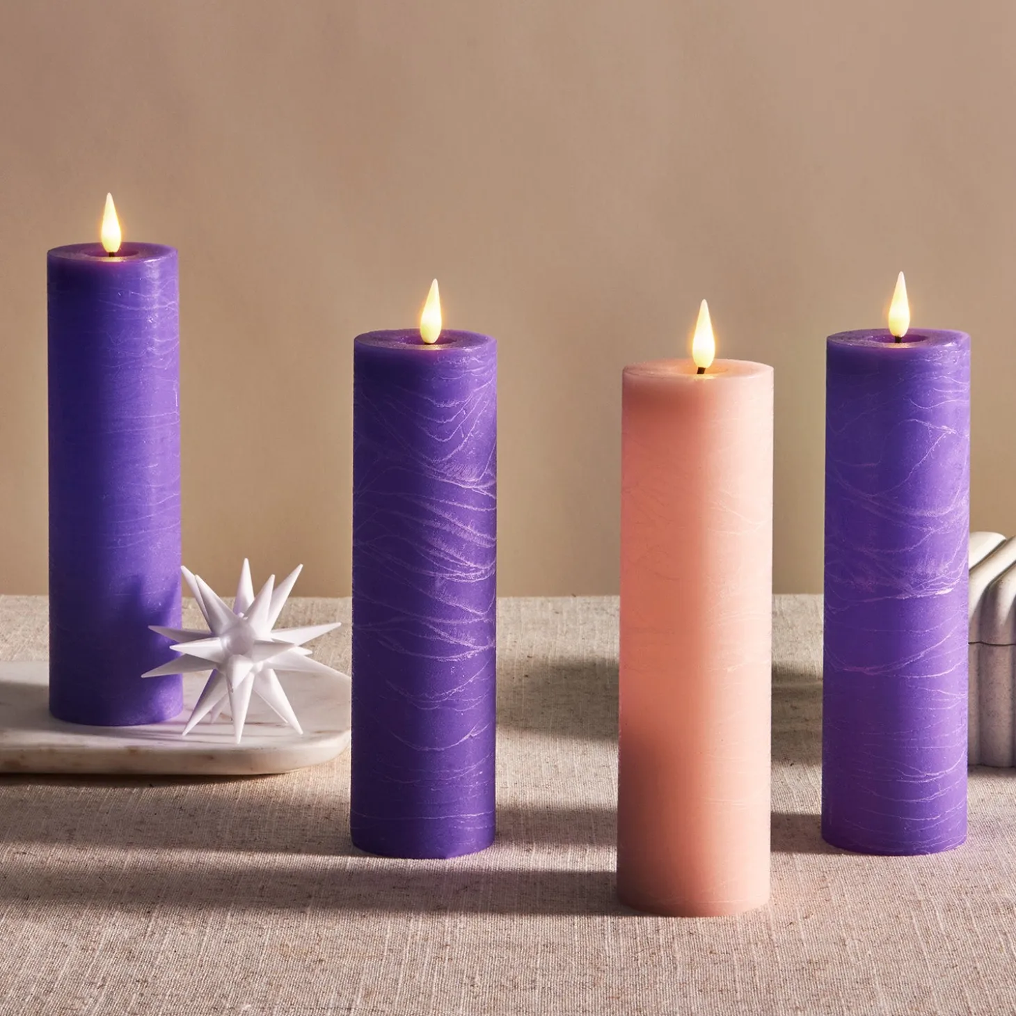 Infinity Wick Advent 7″ Distressed Slim Pillar Candles, Set of 4