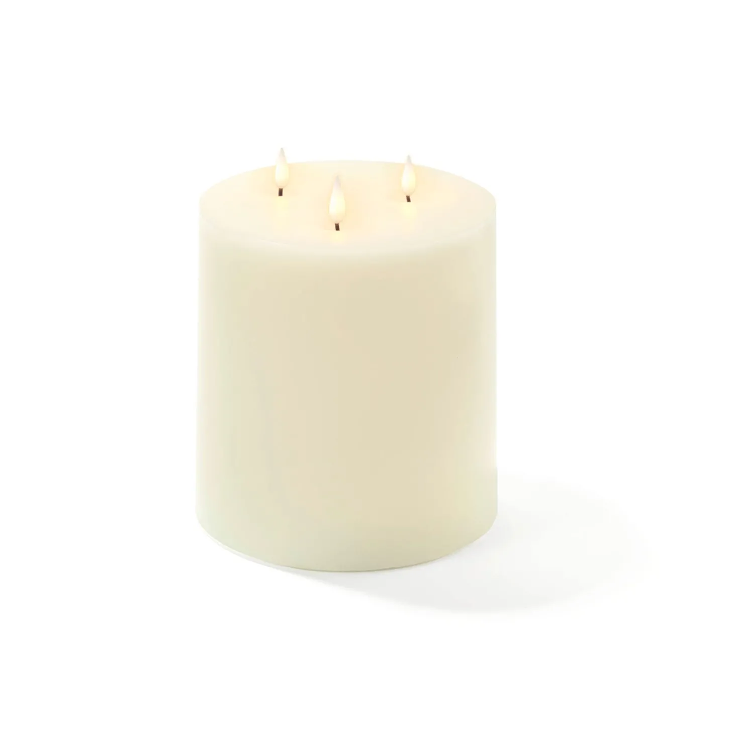 This candle is a showstopper. At six inches wide and six inches tall, this striking candle deserves to be the center of attention. The candle features three of our ultra-realistic Infinity Wick flames at the top and comes with a convenient six-button remote control. This candle is a beautiful, versatile addition to any decor, boasting a real-wax exterior finished in a classic ivory color. The sophisticated flat-top design, included optional timer, and beautiful present-ready packaging make the Infinity Wick an ideal gift for Christmas, housewarming, or for the newlyweds in your family. Create a dining room centerpiece by adding botanicals around this candle, or place it on a mantel or side table for a little extra glow. Perfect for home, weddings, churches, restaurants, and events.