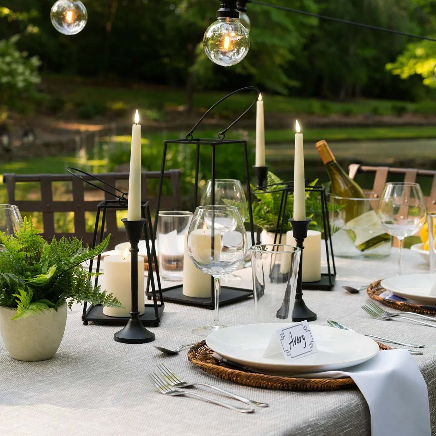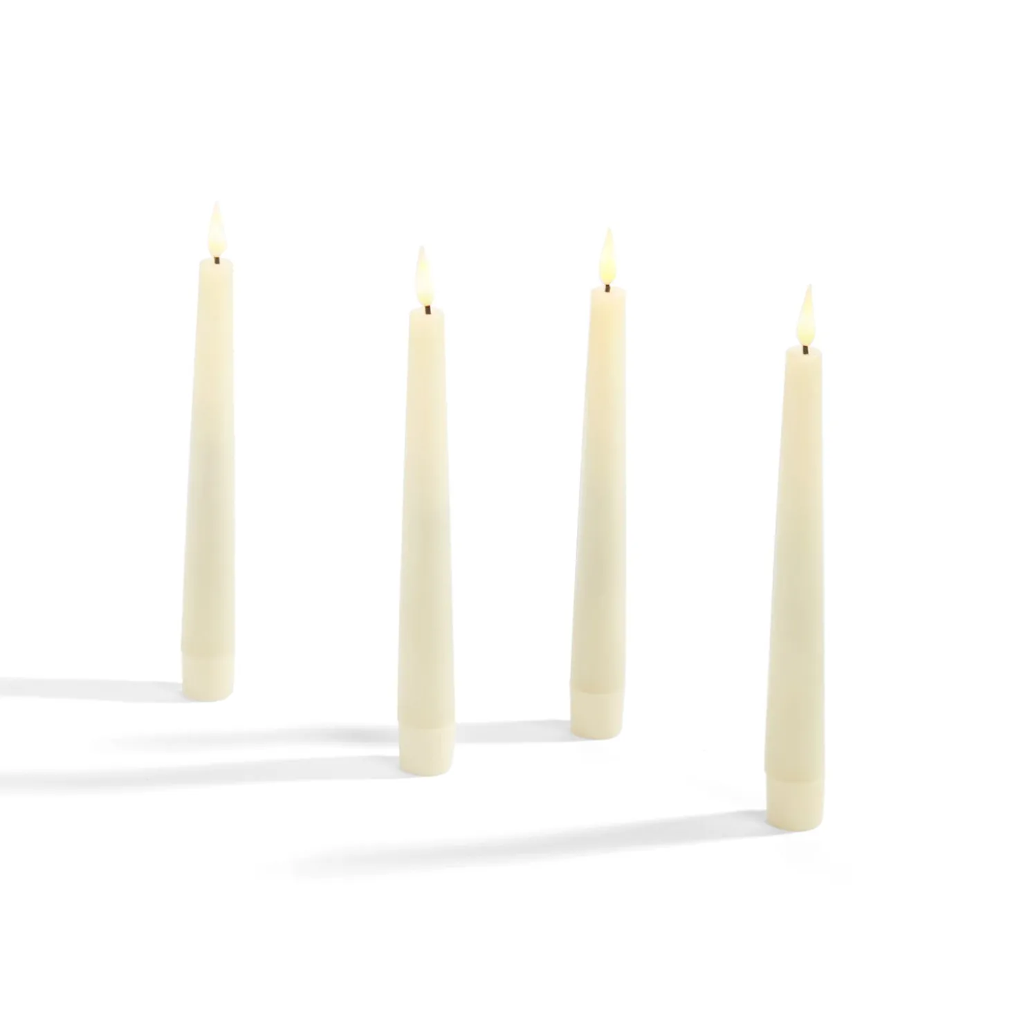 This candle set includes four elegant ivory taper candles featuring our distinctive Infinity Wick flames. They are a beautiful, versatile addition to any style of decor, boasting a real-wax exterior finished with a unique, distressed texture and neutral ivory hue. These tapers will fit most standard taper candle holders, and the included remote with timer make these Infinity Wick Candles an ideal gift for Christmas, housewarming, or for the newlyweds in your family. Place among botanicals to accentuate a floral centrepiece to elevate any dinner table, group together on a side table or mantel, or distribute around a room to bring a touch of cheer to shadowy corners. Perfect for home, weddings, churches, restaurants, and events.