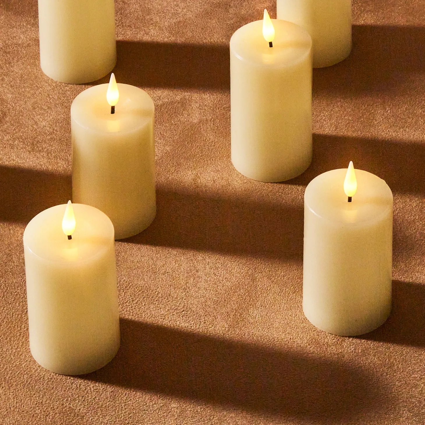 This candle set includes four elegant votive candles measuring 2″ x 3″ and a convenient six-button remote control. This candle set is a beautiful, versatile addition to any decor, boasting real-wax exteriors in a neutral ivory color, and a classic flat-top design. The realistic aesthetic and included remote with timer make the Infinity Wick Votive Candles an ideal gift for Christmas, housewarming, or for the newlyweds in your family. Place among botanicals to accentuate a floral centerpiece, group together on a side table or mantel, or distribute around a room to bring a touch of cheer to shadowy corners. Perfect for home, weddings, churches, restaurants, and events.