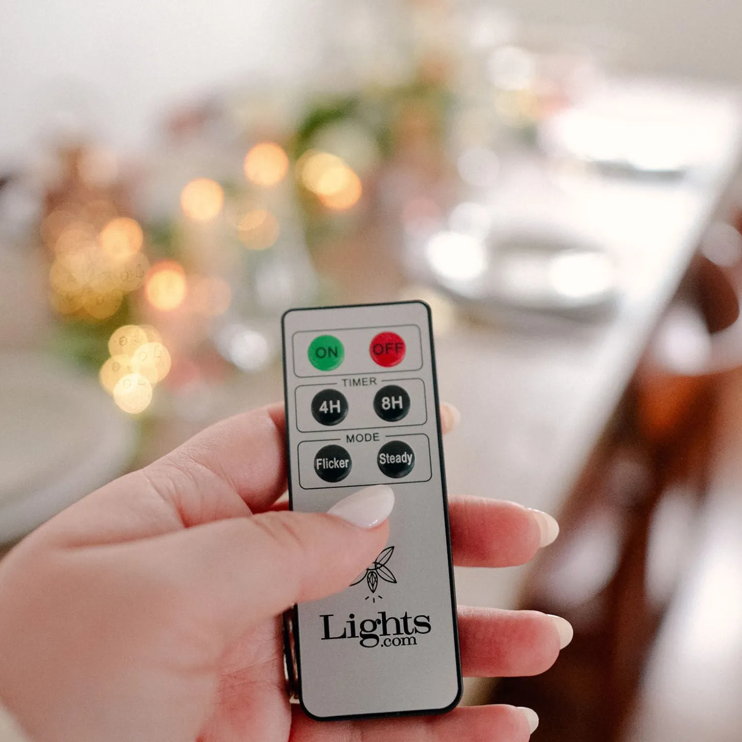 • Use the included six-button remote to choose between steady or flicker, and set the optional four or eight-hour timer