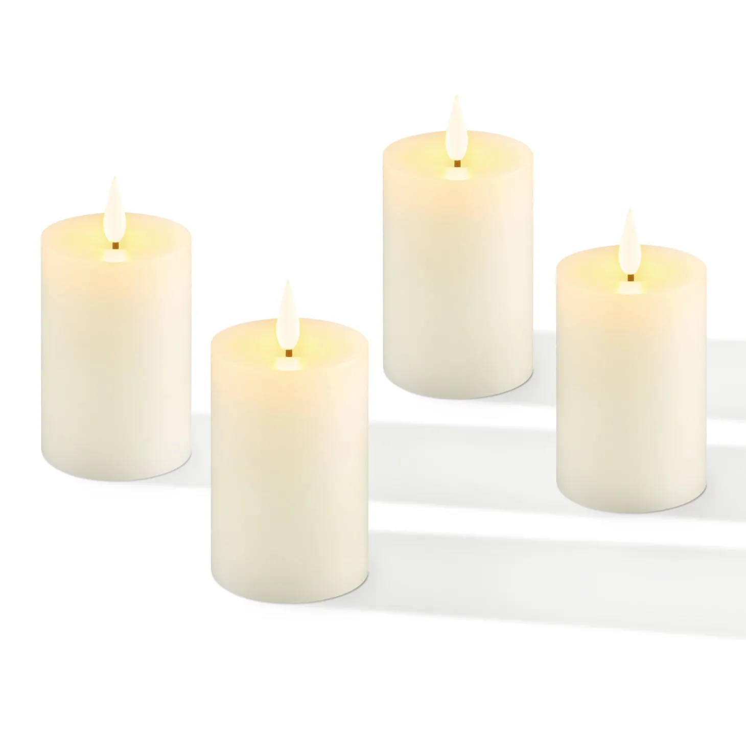 • Four flameless votive candles measuring 2″ in diameter and 3″ high, featuring our distinctive and ultra-realistic Infinity Wick flame