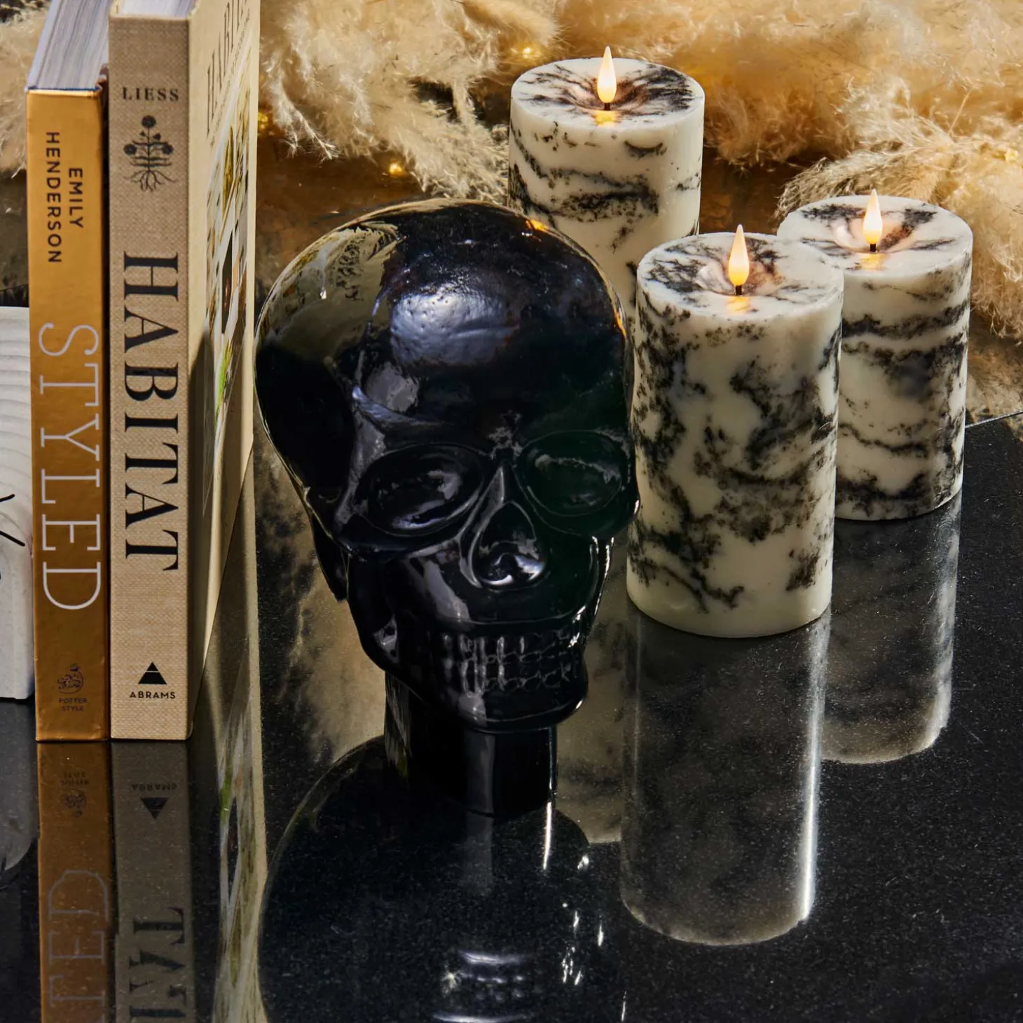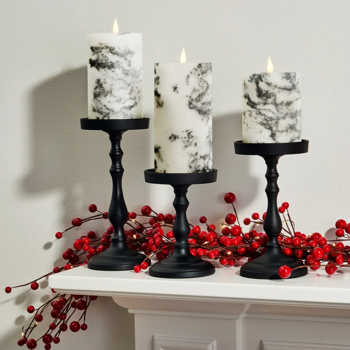• These candles come in a smooth black and white marble wax finish; festive while neutral, they are perfect for holiday or all year long