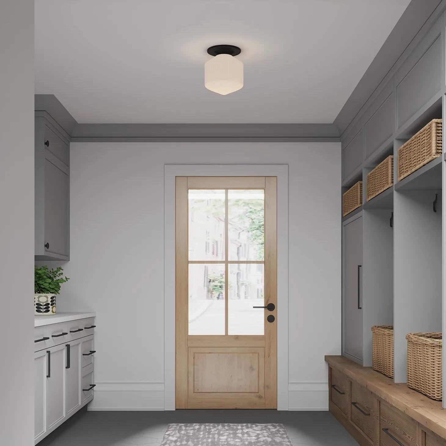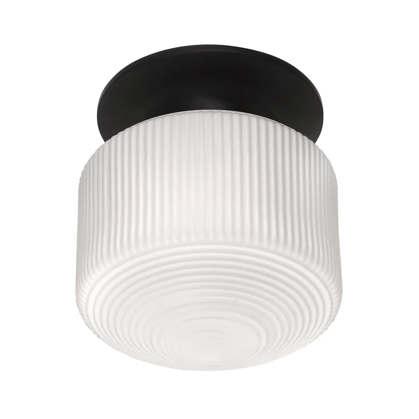 Jules Glass Flush Mount, Matte Black with Opal Glass