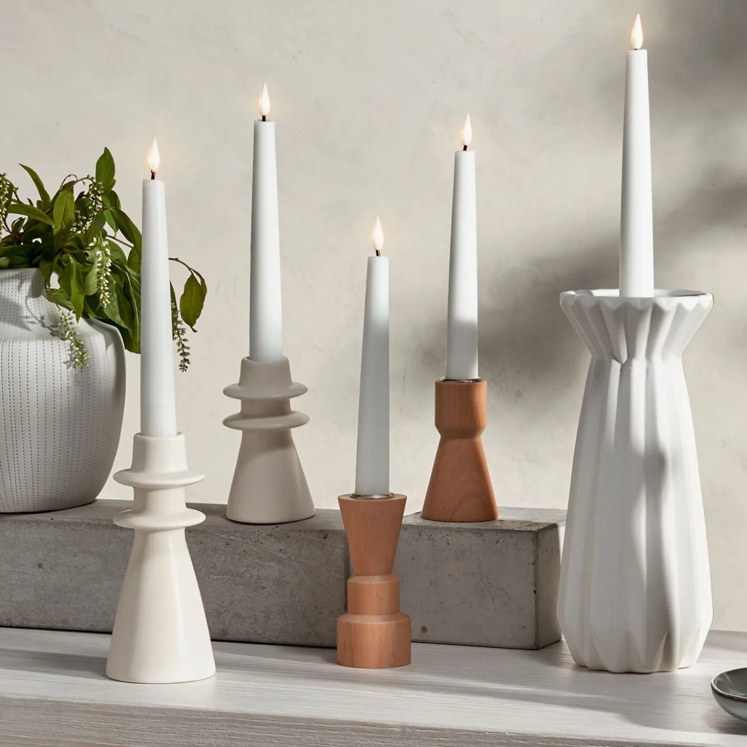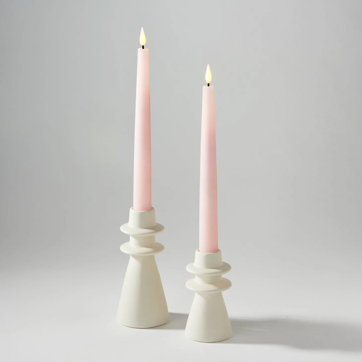 June Porcelain Taper Candle Holders, Set of 2, Matte Ivory