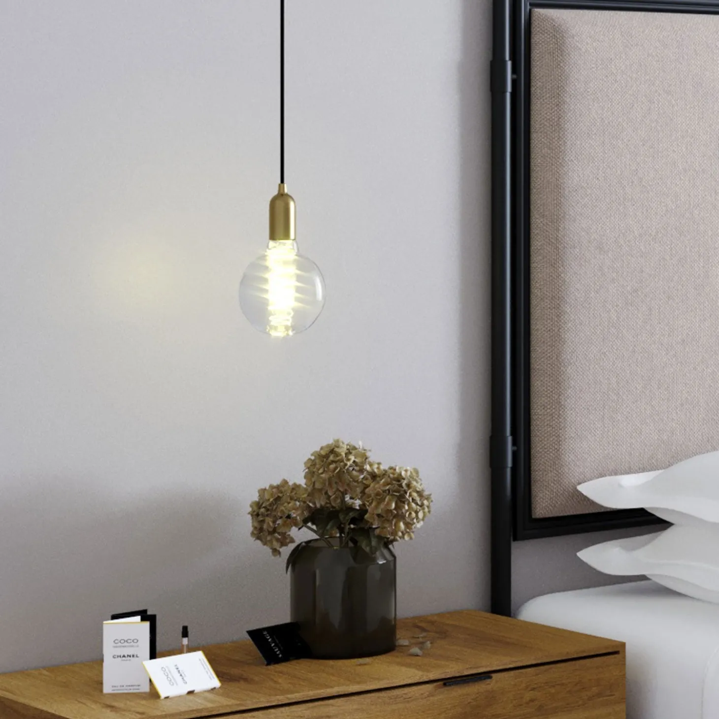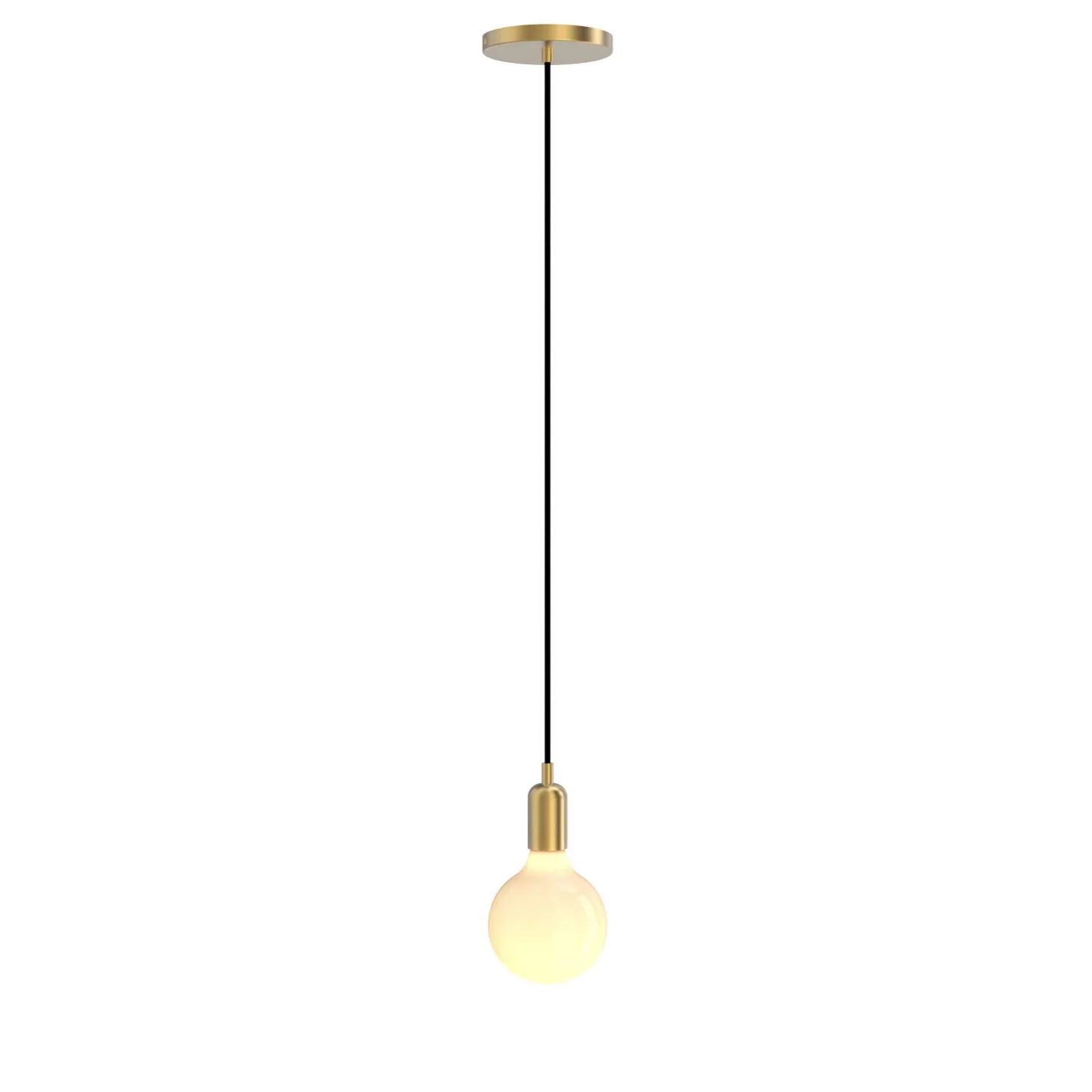 The Landon is a simple, yet refined pendant comprised of a metal socket in a classic, satin brass finish and a vintage-style, braided black cord. The socket is made entirely of clean lines- the perfect showcase for a dramatic bulb. Customize the pendant with a turn of the century-inspired bulb from our Brooklyn Bulb Collection for a modern look with a vintage vibe. With an adjustable length fabric cord, these versatile lights are ideal for any room profile- high ceilings, low ceilings, sloped ceilings at any angle. These pendant light fixtures are perfect for above an island or small table, in a breakfast nook, kitchen, or in a bedroom above bedside tables or in place of lamps.