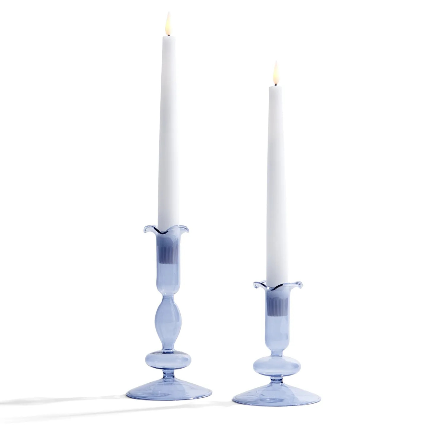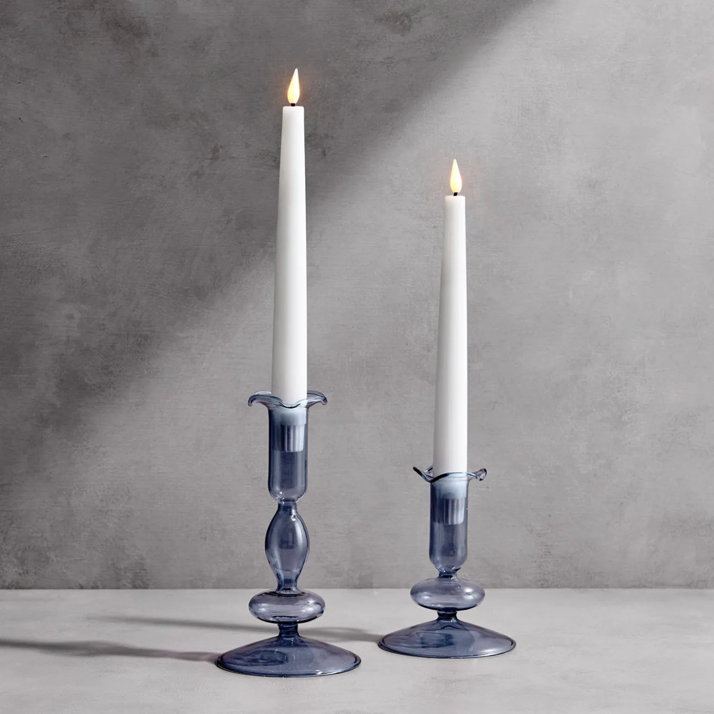 Lily Glass Candle Holders, Dusty Blue, Set of 2