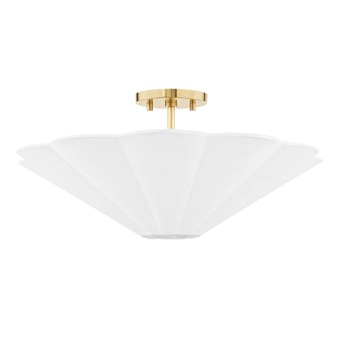 Liza Linen Semi-Flush Mount, White and Aged Brass