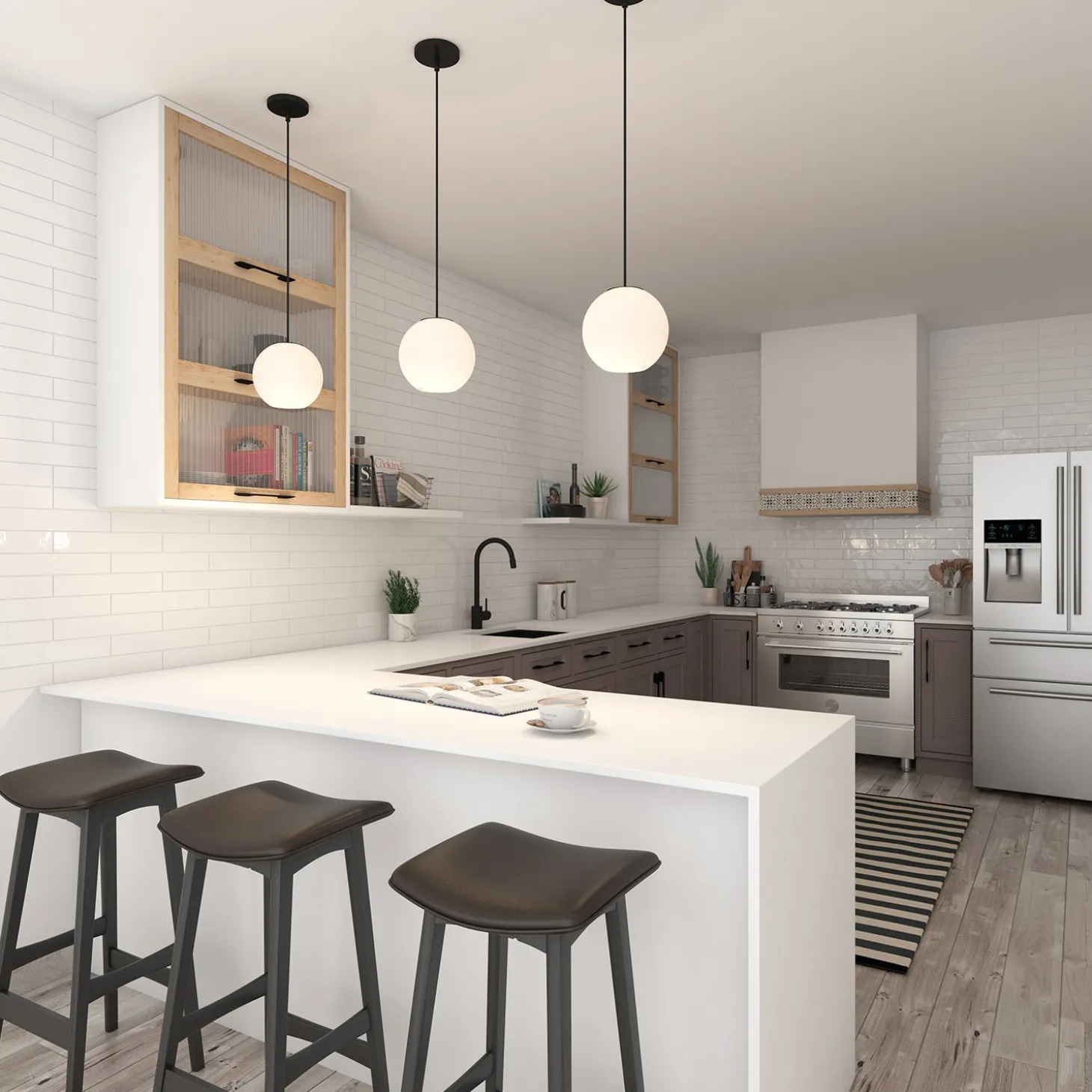The Aria 8″ Opal Globe Pendant Light is a beautiful, modern interpretation of the classic pendant ceiling light. Features a dramatic, frosted glass shade suspended by adjustable down rods and hung from a circular canopy- all in a stunningly modern matte black finish. This updated fixture pairs superior materials with exceptional style, for a look that is both timeless and chic. Ideal in hallways with standard or tall ceilings, above a small table, or paired up over a kitchen island.