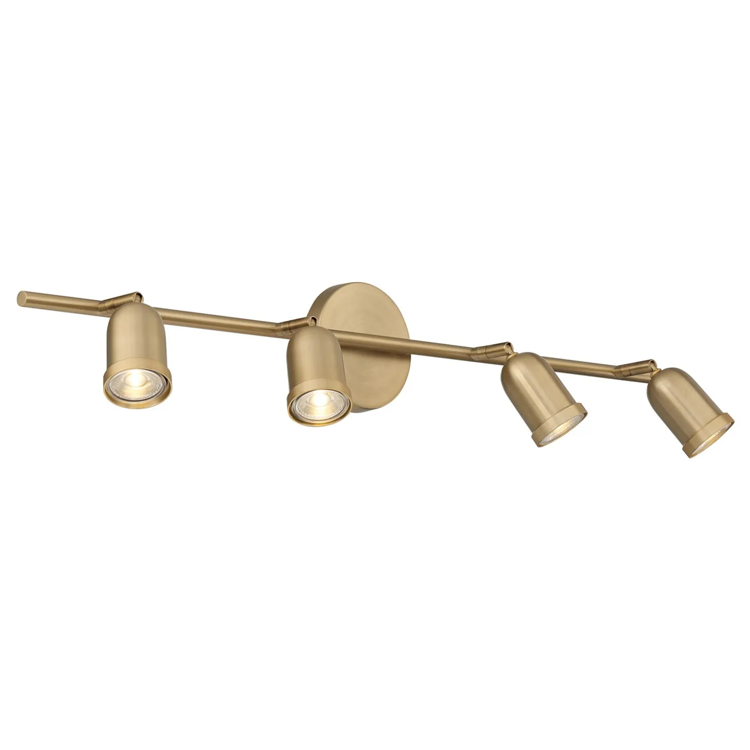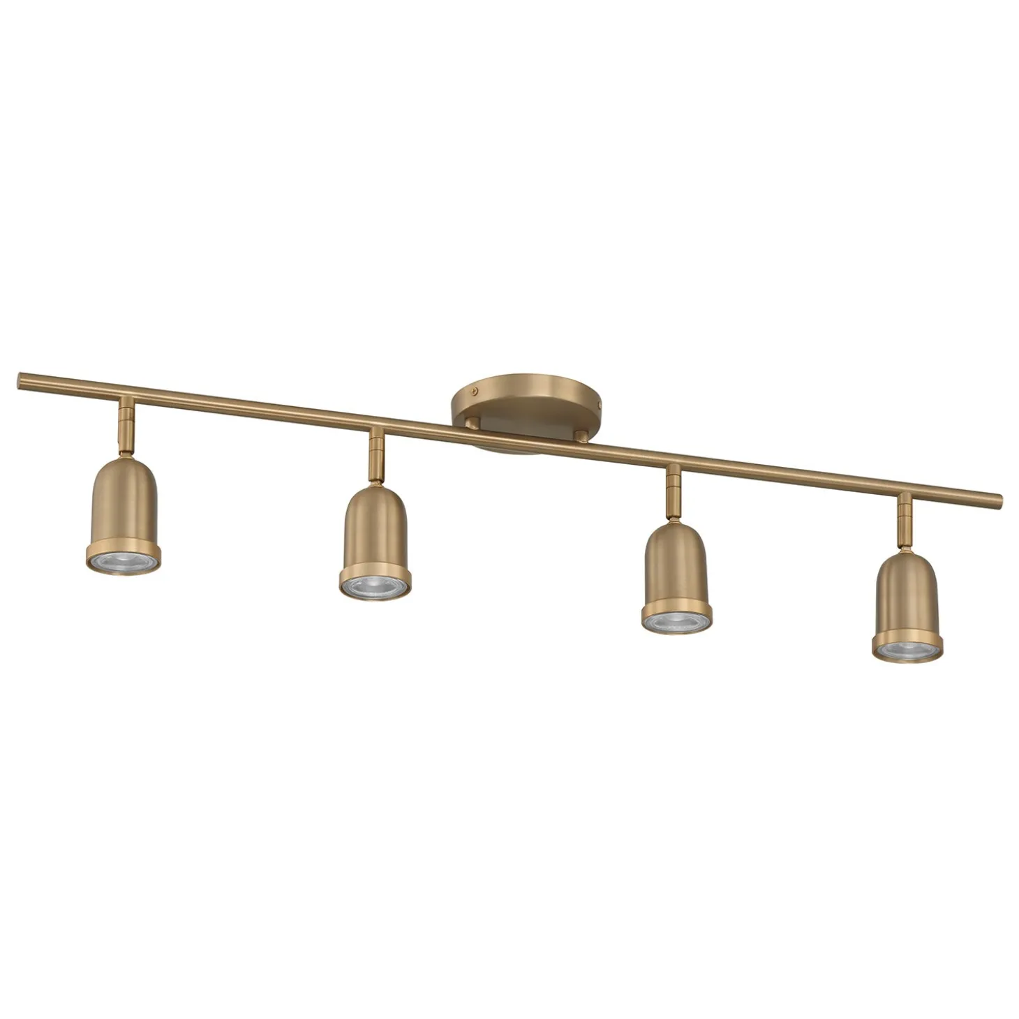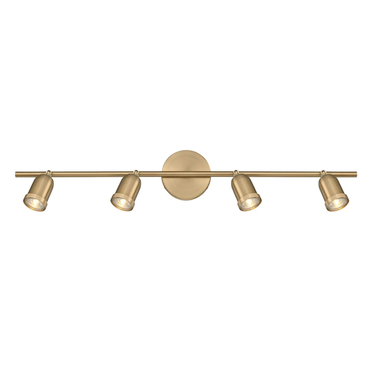The Bixby 4-Light LED Fixed Track Light is a modern industrial take on a classic functional ceiling light fixture. The four sockets are fixed across a 32″ track light bar, and attached to a matching canopy. The powerful GU10 LED light bulbs come included and provide a cheerful, bright light measuring a total of 1680 lumens. A warm brushed brass finish, flexible swiveling heads, and dimming capability make this ideal as indoor spot lights; versatile enough to be placed nearly anywhere. This incredibly versatile fixture can be mounted as a flush mount ceiling light or as a vanity wall light. Install in hallways, bathrooms, or in your living room or bedroom. Adjust the direction of the heads fixed to spotlight wall art or add visibility to an area that needs a little illumination.