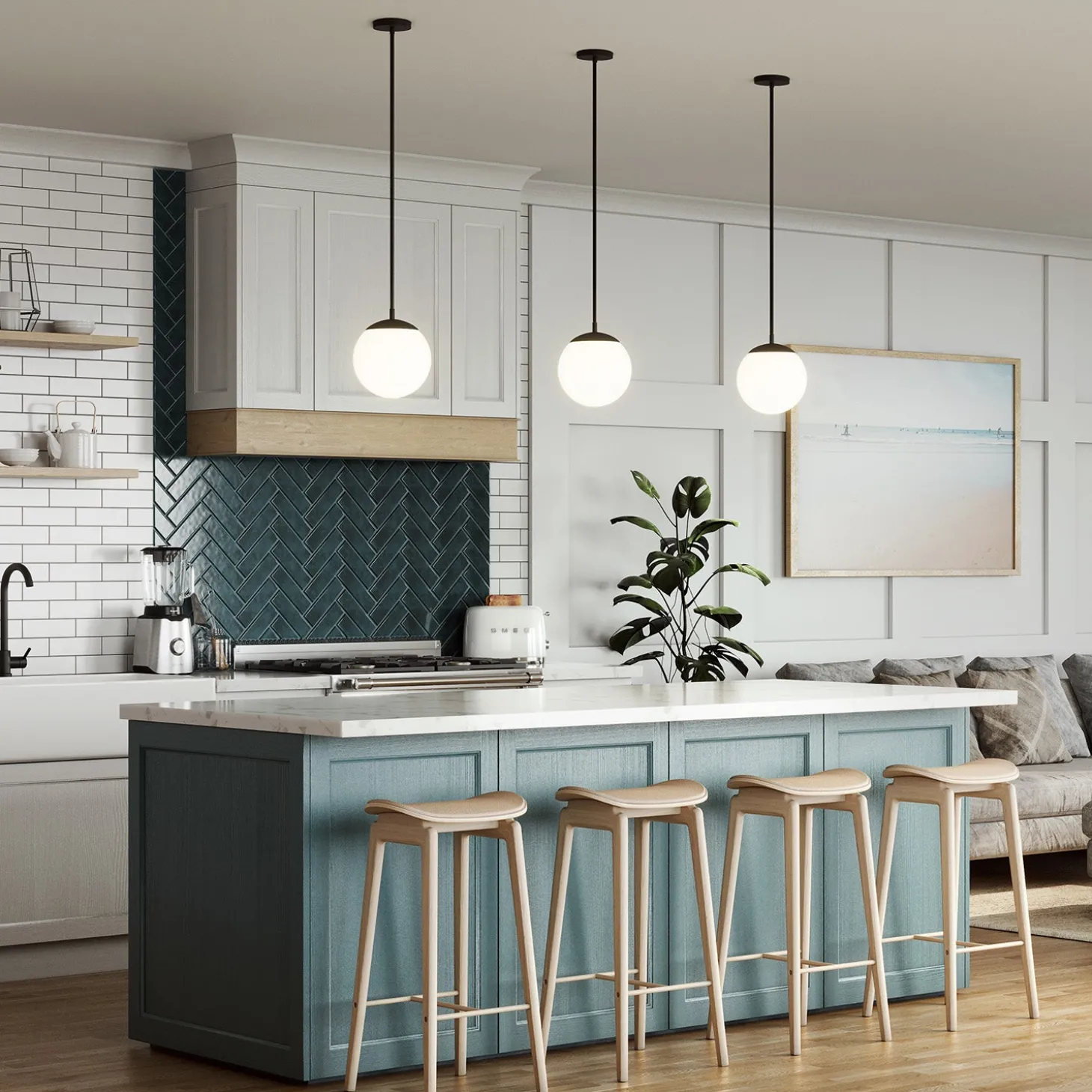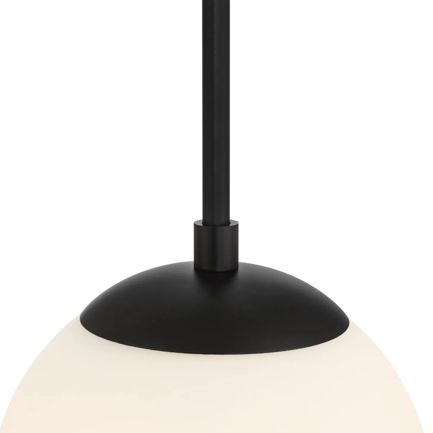 The Castell 8″ Wide Globe Pendant Light is a modern spin on a mid-century classic. Features a frosted, glass globe capped with a spun-metal hood that is suspended by an adjustable down rod and circular canopy – all in a cool matte black finish. Ideal in hallways with standard or tall ceilings, above a small table, or paired up over a kitchen island.