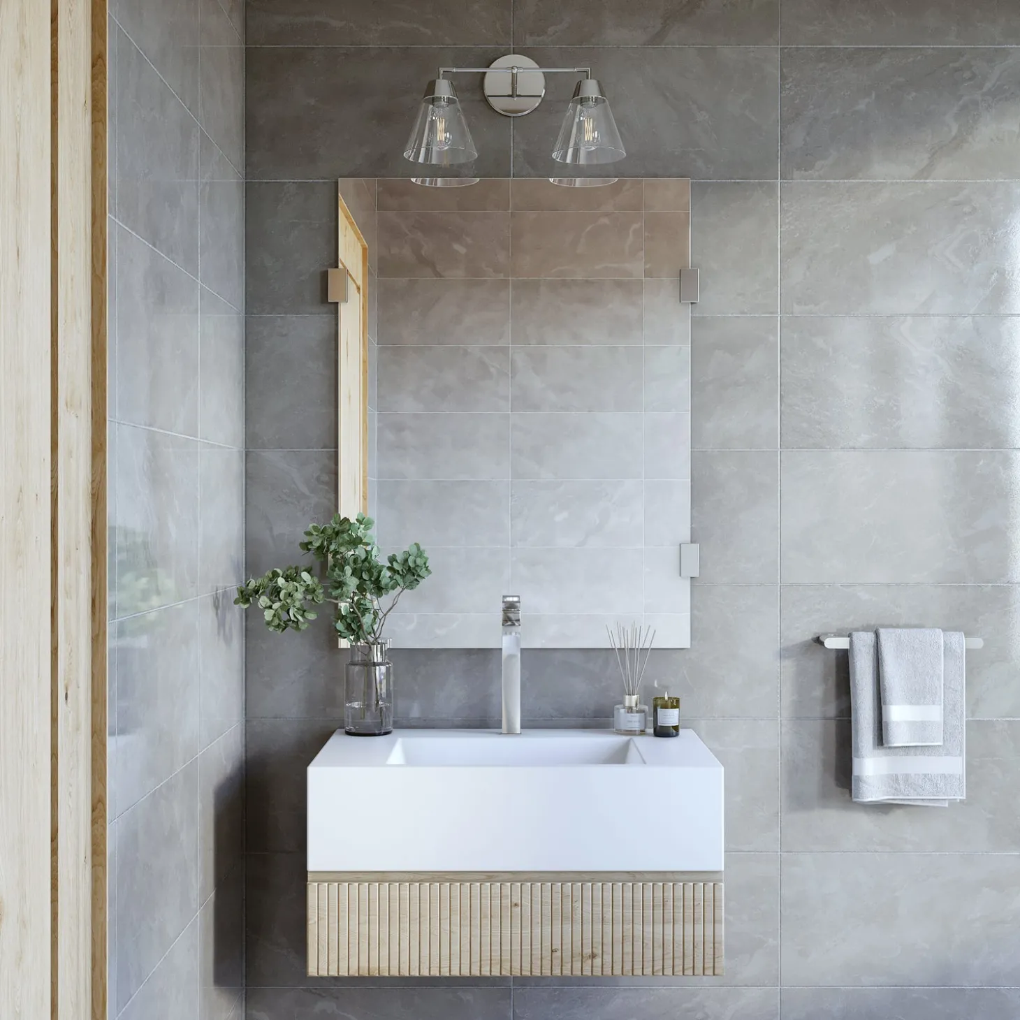 Whether arranged as a single piece or in multiples, the sharp angles and striking details create interest and drama in this classically styled fixture. Ideal in pairs; add ambient, yet direct light above or surrounding a mirror. Not just for the vanity, a pair of stylish, eye-catching double sconces elevate a bathroom, half-bath, or powder room. Install a dimmer and enjoy a truly customizable lighting experience.