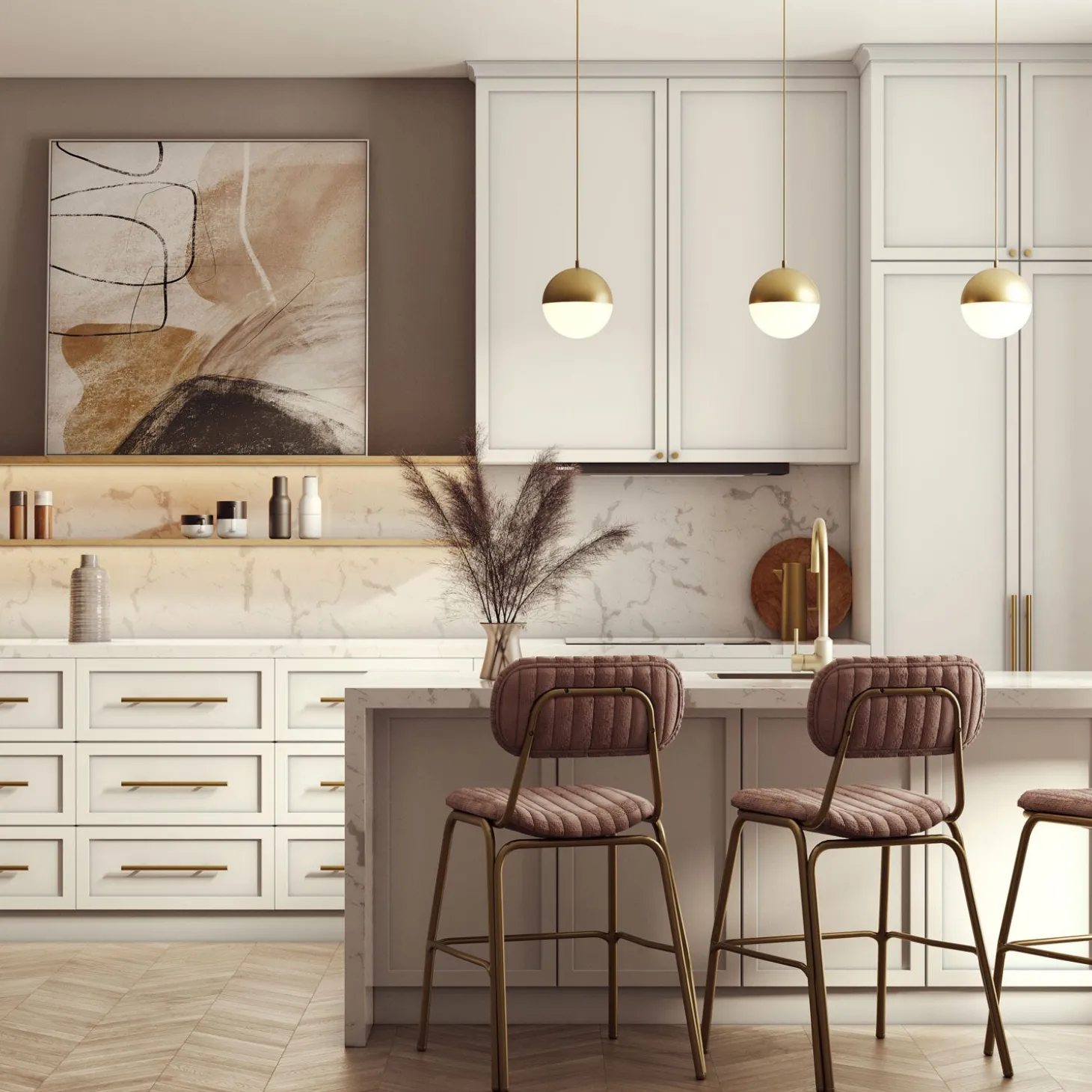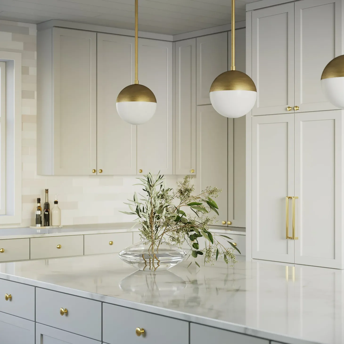 • Features a frosted white glass orb tucked into a spun-metal, aged brass hood