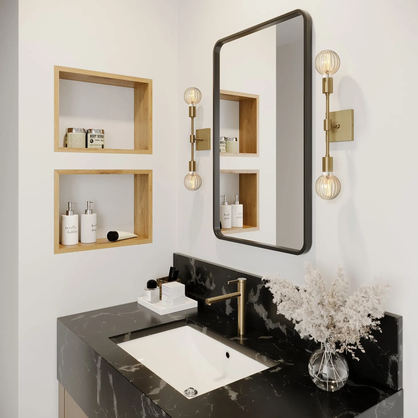 The Prospect Sconce Wall Light is our minimal, industrial approach to a traditional two-light sconce. Features a singular, slender bar highlighting a bulb of your choice at each end – perfect for flanking a mirror or a painting. We love the Prospect Collection for its’ simplicity and style, offering a simple backdrop for the trendiest bulb.