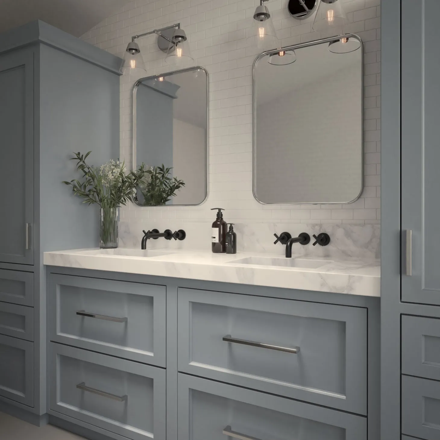 Whether arranged as a single piece or in multiples, the sharp angles and striking details create interest and drama in this classically styled fixture. Ideal in pairs; add ambient, yet direct light above or surrounding a mirror. Not just for the vanity, a pair of stylish, eye-catching double sconces elevate a bathroom, half-bath, or powder room. Install a dimmer and enjoy a truly customizable lighting experience.