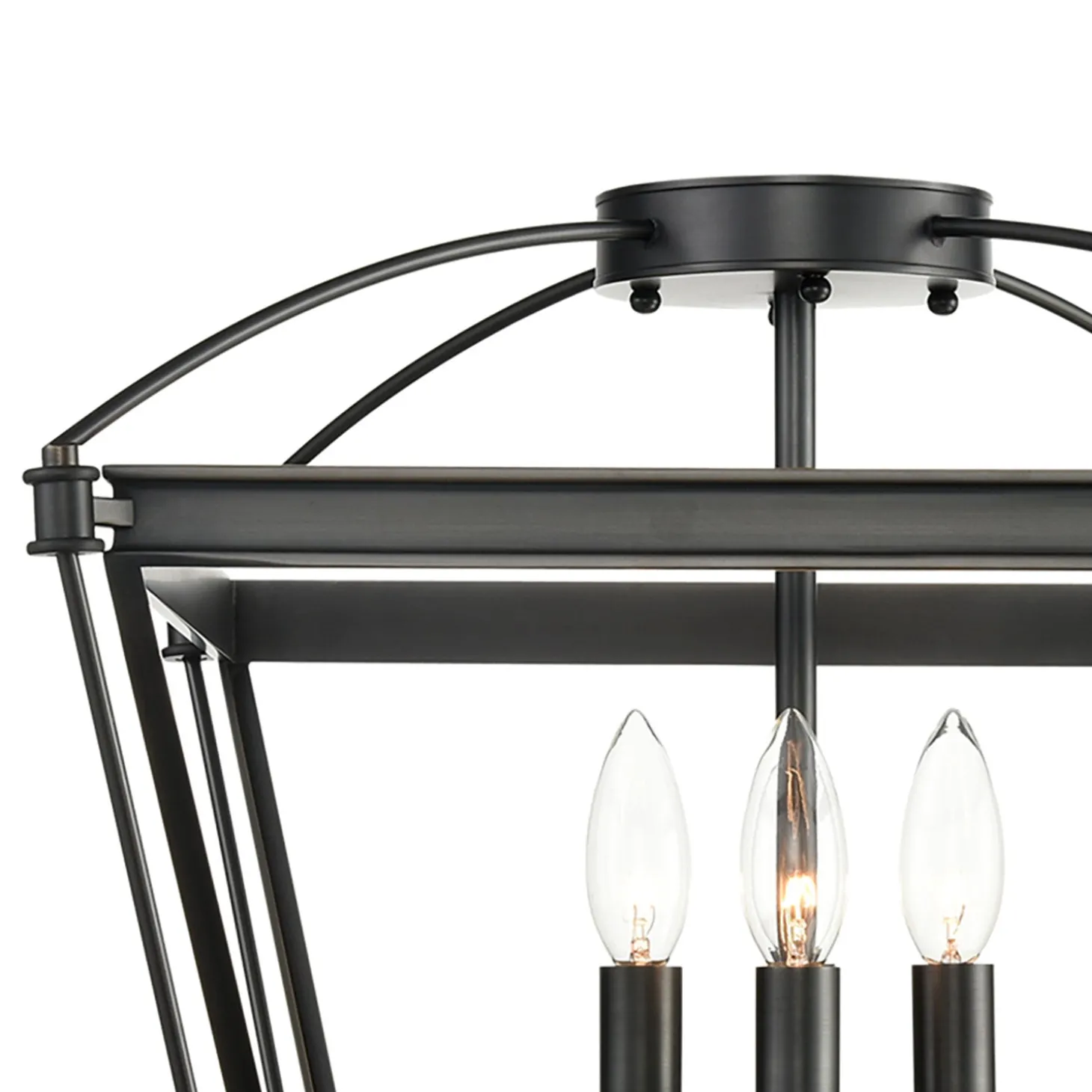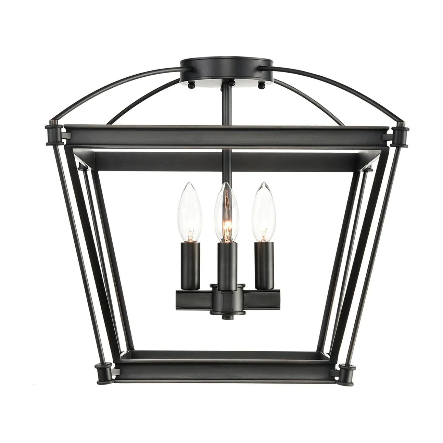 The Pierce Semi-Flush Mount brings timeless architectural elegance to rooms with lower ceilings. This stately ceiling light features a classic open-cage lantern design with clean geometric lines and a rich Urban Bronze finish that adds sophisticated character. The tapered silhouette with graceful arched top creates a refined traditional profile while maintaining an airy, open feel. Four candle-style lights are arranged within the central column, providing warm, ambient illumination that enhances the fixture’s architectural details. With a close-to-ceiling installation, this versatile 16-inch fixture makes a distinguished statement in hallways, bedrooms, or living spaces, blending traditional sensibility with understated sophistication.