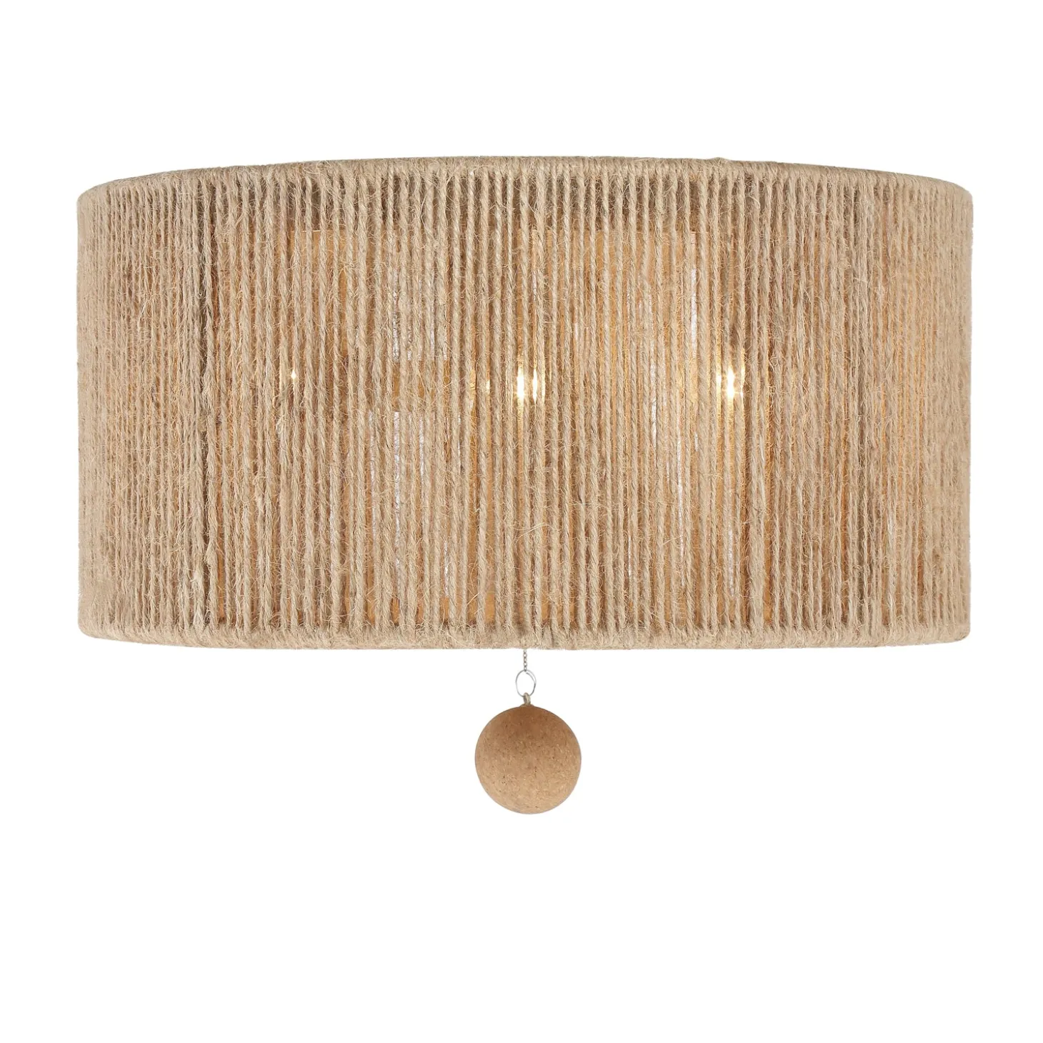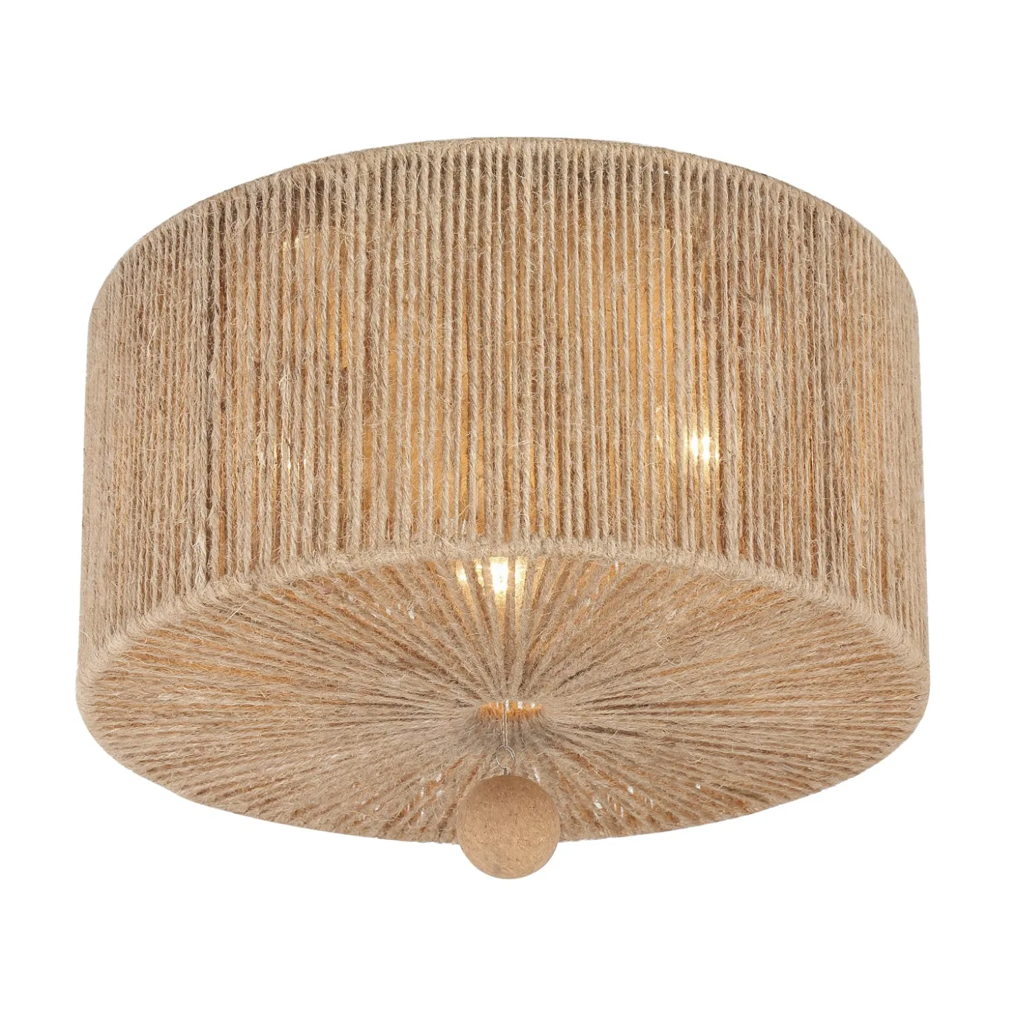 The Selma Flush Mount features a textural design with natural jute wrapped vertically around a cylindrical frame in satin sand finish. This artisanal fixture creates beautiful filtered light patterns, casting a warm and inviting glow throughout your space. Measuring 11″ tall and 16″ in diameter, the Selma is perfect for bedrooms, living rooms, or hallways with lower ceilings where you want to add natural texture and ambient lighting. The organic material brings a bohemian or coastal vibe to your home while the clean drum shape complements various interior styles. The decorative cork finial adds a thoughtful detail to this eco-friendly design.