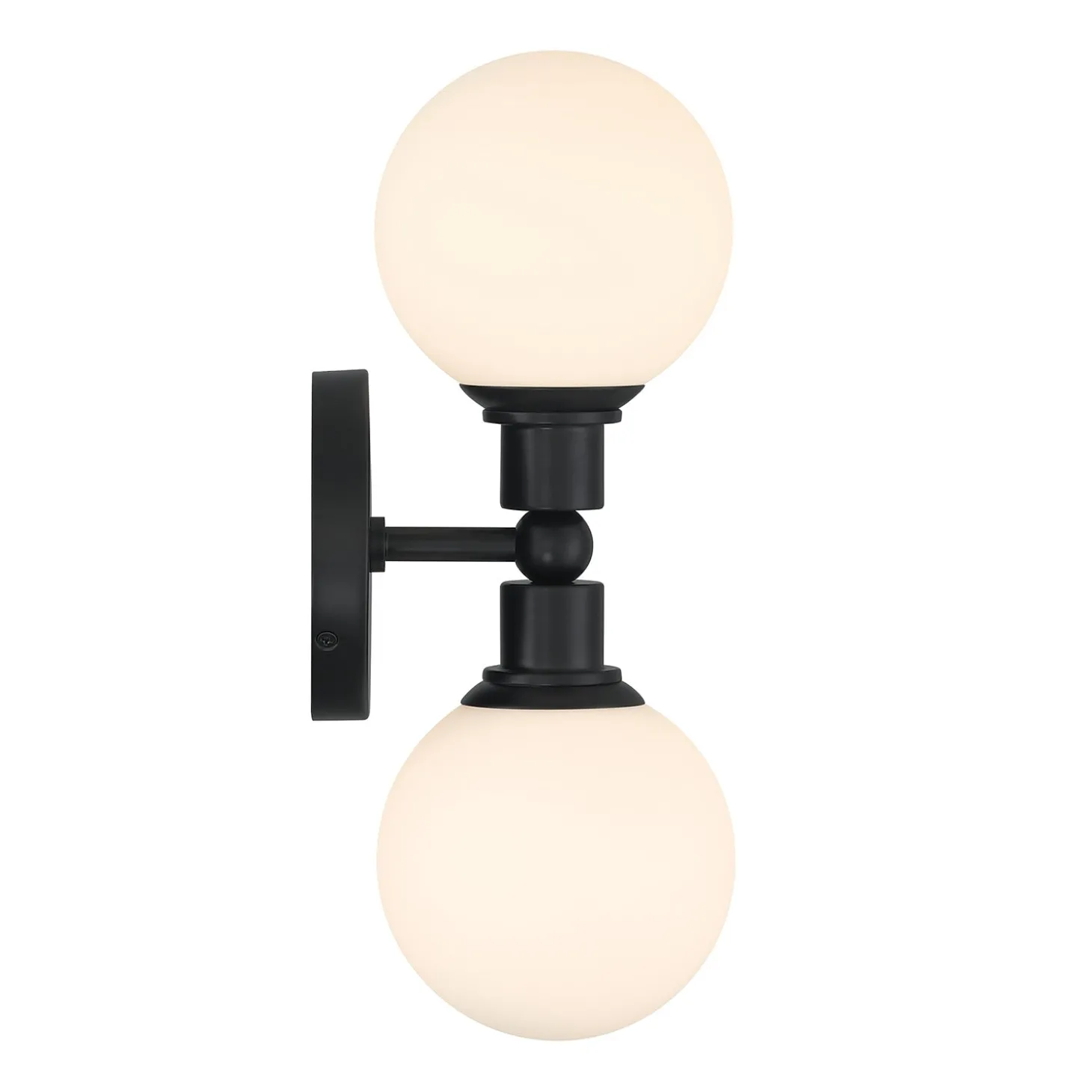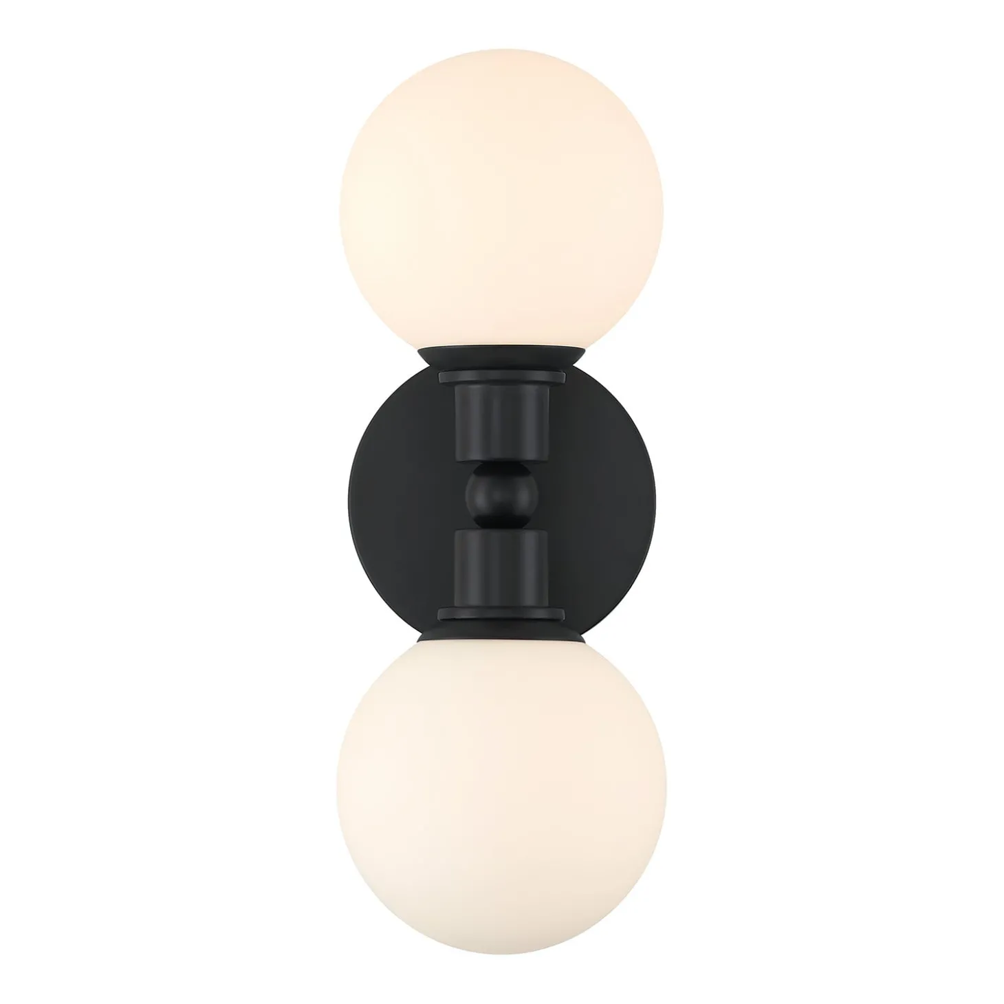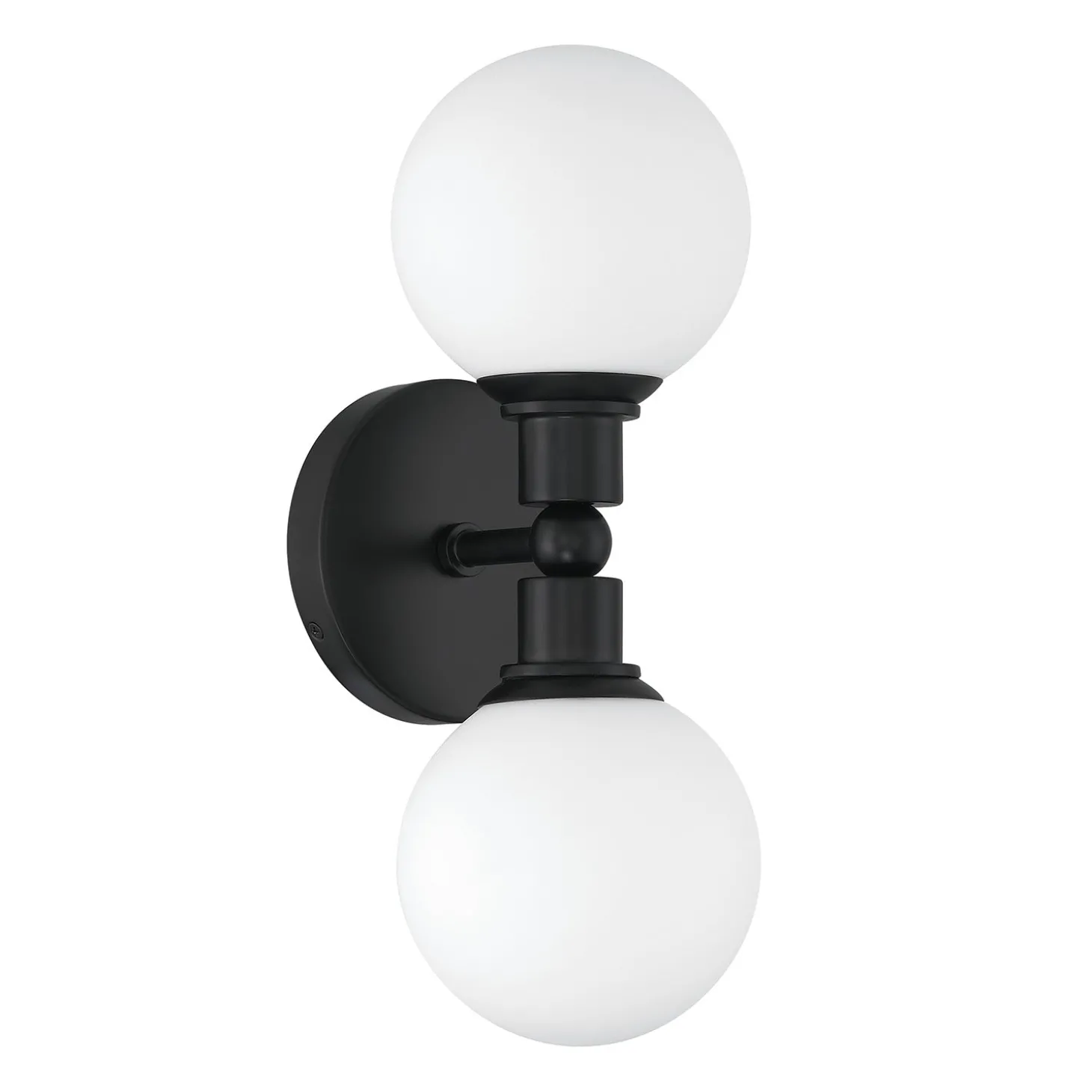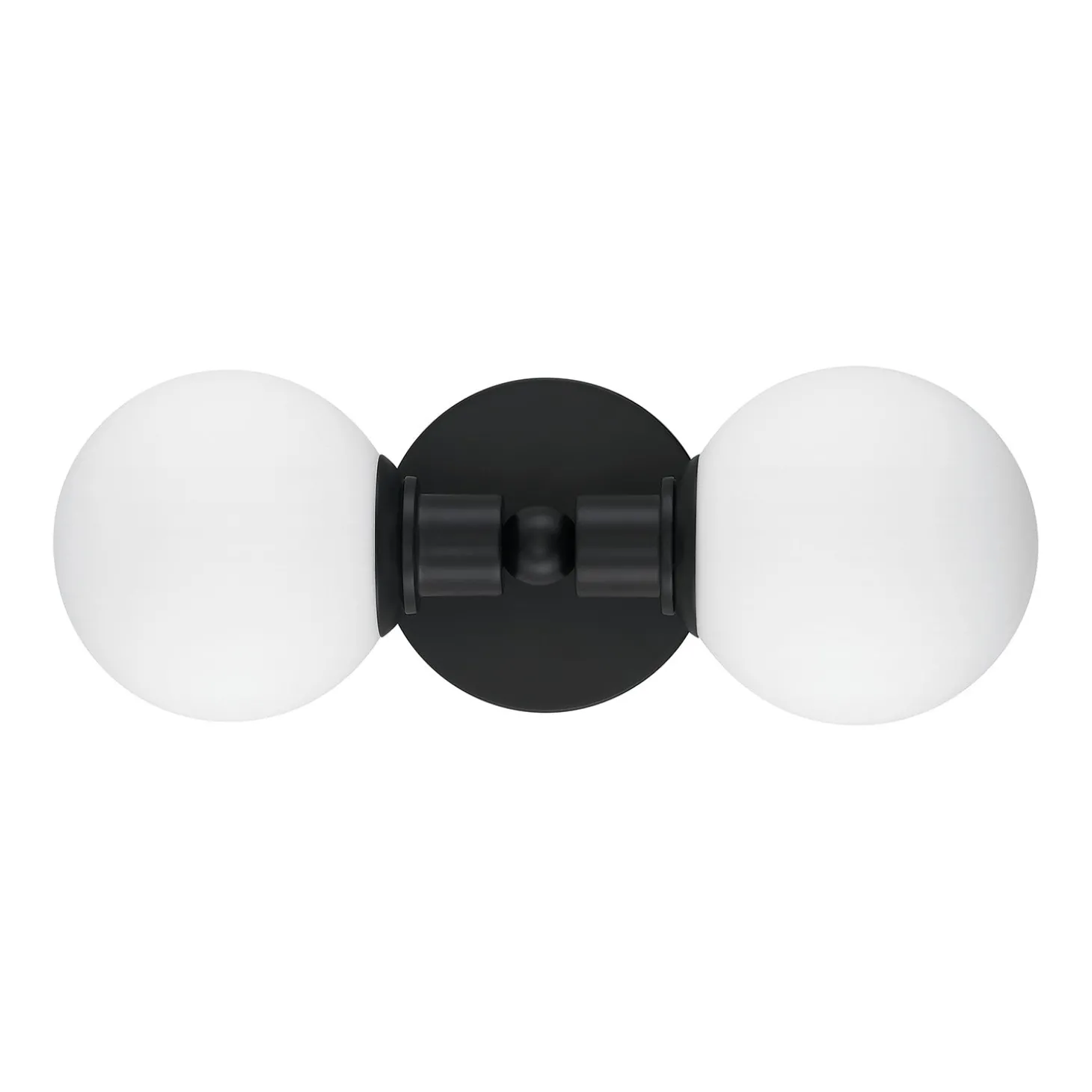 • Finished in matte black, with white opal glass globes